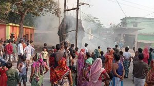 पुआल की ढेर में आग लगने से मची अफरा-तफरी