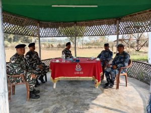 -सिलीगुड़ी रानीडांगा सेक्टर हेडक्वार्टर के डीआईजी ने दोनों देशोंं के अधिकारियों के साथ की बैठक दिघलबैंक. एसएसबी 12वीं वाहिनी की एफ कंपनी मुख्यालय दिघलबैंक कैंप का शनिवार को सिलीगुड़ी रानीडांगा सेक्टर हेडक्वार्टर के डीआइजी एकेसी सिंह ने निरीक्षण किया. इस दौरान जवानों से मिलकर उन्होंने सुरक्षा का जायजा लिया. इसीक्रम में भारत नेपाल सीमा स्थित चेकपोस्ट से सटे पीलर का भी निरीक्षण किया. चेकपोस्ट पर तैनात जवानों से बात की साथ ही उनकी समस्याओं को भी सुना.उसके बाद स्थानीय दिघलबैंक कैंप में जवानों के साथ बैठक की. जिसमें नेपाल के(झापा) टांगनडुब्बा एएपीएफ इंस्पेक्टर संतोष कुमार शामिल थे. डीआइजी श्री सिंह ने जवानों से बातचीत करते हुए कहा कि ईमानदारी पूर्वक डियूटी करें.साथ ही सीमा पर अपने दायित्व का निर्वहन करें. उन्होंने कहा कि नेपाल और भारत में बेटी-रोटी का संबंध है ऐसे में सीमा पर देश की सुरक्षा करते हुए हमें यह भी ध्यान रखने की आवश्यकता है कि दोनों देशों के नागरिक बेवजह परेशान न हो, साथ ही यह भी ध्यान रखना होगा कि इन बातों का गलत फायदा राष्ट्र विरोधी ताकतें नहीं उठा सके. इसके लिए आवश्यक है कि सीमा पर तैनात एसएसबी के जवान सीमा से सटे गांव के लोगों के साथ हमेशा सेवा व बंधुत्व का भाव लिए सीमा की सुरक्षा का कार्य करें. इस दौरन उन्होंने डुब्बाटोला बीओपी कैम्प का भी निरीक्षण किया.रात्रि विश्राम करने के बाद रविवार को बटालियन चले गए.मौके पर डिप्टी कमान्डेंट सपन रजक एवं दिघलबैंक कंपनी प्रभारी असिस्टेंट कमांडेंट प्रियरंजन चकमा भी उनके साथ थे.