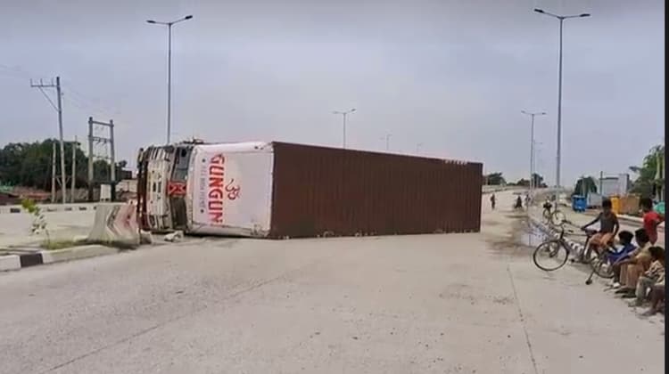 पौआखाली।(किशनगंज)। पौआखाली एलआरपी चौक के समीप बीच फोरलेन मार्ग परशनिवार की अहले सुबह खिलौनों से भरा एक कंटेनर पलट गया. दुर्घटना में चालक व खलासी बाल बाल बच गये. कंटेनर में बच्चों के खिलौने लोड है. जिसे दिल्ली से पूर्वोत्तर राज्य आसाम ले जाया जा रहा था. प्राप्त जानकारी के मुताबिक यह हादसा फोरलेन मार्ग 327 ई पर तब हुआ जब पौआखाली एलआरपी चौक स्थित ओवरब्रिज से नीचे उतरते वक्त दूसरे लेन में वाहन को लेकर जाना था तभी ओवरटेक कर रहे अन्य वाहन के कारण दुर्घटनाग्रस्त वाहन के चालक को डायभर्ट वाले स्थान में एरो नजर ही नहीं आया और एकाएक वाहन को मोड़ने के क्रम में अनियंत्रित होकर वाहन पलट गया. वहीं इस मामले में थानाध्यक्ष आशुतोष मिश्रा ने बताया कि हादसा देर रात्रि करीब साढ़े ग्यारह बजे की है. जानकारी के मुताबिक जानवर को बचाने के क्रम में यह हादसा हुआ है. रात को ही क्रेन के सहारे कंटेनर को फोरलेन से हटाने की कोशिश की किंतु उसमें वे लोग सफल नहीं हो सके. हादसे के बाद फोरलेन में एंबुलेंस सहित कई वाहनों का परिचालन करीब दो तीन घंटों तक अवरुद्ध हो गया था जिसे किसी तरह पुनः चालू कराया गया. थानाध्यक्ष के अनुसार हादसे में पलटा कंटेनर की पहरेदारी में चौकीदार को नियुक्त कर दिया गया है. दुर्घटनाग्रस्त वाहन को सड़क से हटाने का प्रयास जारी है. गौरतलब हो कि आए दिन अररिया- गलगलिया नवनिर्मित फोरलेन सड़क मार्ग पर वाहनों का आपस में टक्कर और पलटने की घटनाएं घटित हो रही है. लगातार घटित इस तरह की दुर्घटनाओं से इस मार्ग होकर परिचालन करने वाले यात्रीगण सहमे नजर आ रहे हैं.