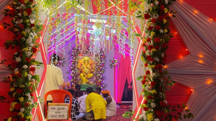-प्रतिमा स्थापित कर की जा रही है पूजा-अर्चना -नवयुवक संघ के युवाओं की सहभागिता महत्वपूर्ण -श्रद्धालुओं की उमड़ रही है भीड़. किशनगंज बुद्धि प्रदाता भगवान श्री गणेश के जन्म उत्सव अर्थात गणेश चतुर्थी के अवसर पर बुधवार को बहादुरगंज प्रखंड के लोहगाडा हाट में पूरे विधि-विधान और वैदिक मंत्रोच्चारण के साथ भगवान गजानन की मूर्ति स्थापित की गयी.पूरे धूमधाम से यहां गणेश उत्सव का आयोजन हो रहा है.गौरतलब है कि पिछले ढाई दशक से हर साल भगवान गणेश की प्रतिमा स्थापित कर गणेश पूजा का आयोजन होता रहा है.जिसमे स्थानीय नवयुवक संघ की भूमिका सराहनीय होती है.इस बार भी पूजा स्थल बजरंगबली मंदिर को पूरी तरह सजा दिया गया है.पूजा कमिटी के अध्यक्ष मंजय कुमार साह ने बताया कि बुधवार से शुरू होकर शुक्रवार तक कुल तीन दिनों तक गणेश महोत्सव मनाया जाएगा. इस आयोजन में लोहागड़ा के नव युवक एवं युवक संघ लोहागाडा के सभी सदस्य सराहनीय भूमिका निभा रहे हैं.