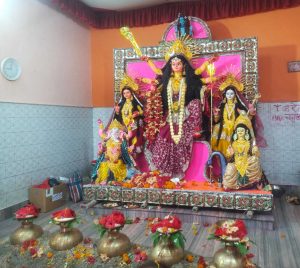किशनगंज. चैती नवरात्र के तीसरे दिन भगवती मंदिरों में पूजा-अर्चना के लिए भक्तों की भीड़ उमड़ पड़ी. शहर के मनोरंजन क्लब परिसर, बड़ी कोठी दुर्गा मंदिर में मां दुर्गा की भव्य प्रतिमा स्थापित कर पूजा-अर्चना की जा रही है. नवरात्र को लेकर शहर के भगवती मंदिरों में सुबह से ही पूजा-अर्चना करने वालों की भीड़ उमड़ती रही. नवरात्र के प्रथम दिन वैदिक मंत्रोचारण और विधि विधान के कार्य साथ पूजा शुरू हो गयी. अब से लगातार नौ दिनों तक देवी दुर्गा की पूजा और साधना बड़े ही भक्ति भाव से की जाएगी. नौ दिनों तक मां दुर्गा के अलग-अलग स्वरूपों की पूजा होगी. चैत्र नवरात्रि के शुरू होने के साथ ही हिंदू नववर्ष भी प्रारंभ हो गया है. नवरात्र में भक्त कलश स्थापन कर भी पूजा करते हैं और व्रत रखते हैं. शहर के मनोरंजन क्लब में मां दुर्गा की प्रतिमा स्थापना के साथ-साथ भव्य पंडाल का भी निर्माण किया गया है. वहीं उतरपाली दुर्गा मंदिर में नवरात्र को लेकर विशेष पूजा-अर्चना और संध्या आरती का आयोजन किया गया जिसमें बड़ी संख्या में भक्त शामिल हुए.