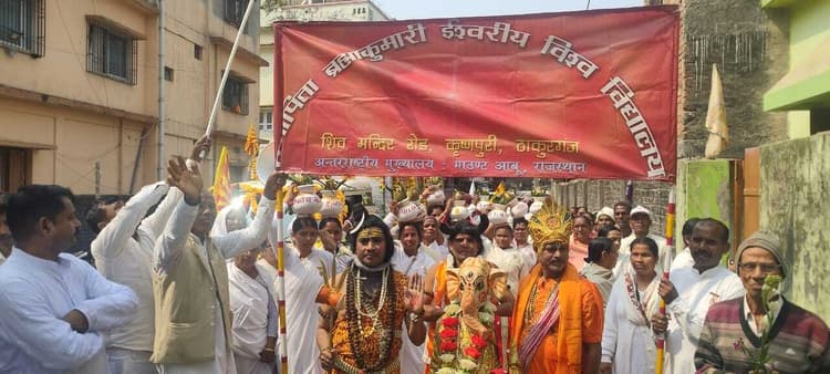 ठाकुरगंज. प्रजापति ब्रह्मकुमारी ईश्वरीय विश्वविद्यालय ठाकुरगंज के द्वारा मंगलवार को भव्य शोभायात्र निकाली गया. इस दौरान झांकी भी निकाली गई जिसमे लक्ष्मी, नारायण, गणेश एवं भगवान शिव शामिल थे. शोभायात्रा नगर पंचायत के वार्ड नम्बर 12 कृष्णपुरी से प्रारंभ होते हुए मस्तान चौक, डीडीसी मार्केट, बसस्टैंड, भातडाला, डाक बंगला होते हुए वापस अपने गंतव्य स्थान पर पहुंची, ओम शांति की वरिष्ठ दीदी बी के शारदा ने बताया कि प्रजापति ब्रह्माकुमारी ईश्वरीय विश्वविद्यालय का मुख्य उद्देश्य नशा से मुक्ति दिलाना, राज योग एवं सभी को सत्य के मार्ग पर चलने के लिए प्रेरित करना है, विश्व में प्राकृतिक आपदा बढ़ती जा रही है, समय बहुत तीब्र गति से आगे बढ़ते जा रहा है अगर इस बहुमूल्य समय को गवाते हुए हम चेत नहीं सके तो बाद में पछताने का मौका भी नहीं मिलेगा. शोभायात्रा के दौरान स्थानीय सहित आसपास इलाके के सैकड़ों की संख्या में ओम शांति के भाई बहन शामिल थे. शोभायात्रा के उपरांत ओम शांति का झंडा फहराया गया एवं ब्रह्मा भोजन का आयोजन किया गया. कार्यक्रम को सफल बनाने में बी के शारदा, बी के रश्मि, भवर लाल शर्मा, रणधीर कुमार सिंह, मुकेश सोनार, ललिता देवी, सीमा मंत्री, रामु अग्रवाल, मंजू देवी, नवीन अग्रवाल, प्रवीण मंत्री, सन्तोष मलचन्दरका, युगल किशोर एवं राम किशुन आदि लोगों की महत्वपूर्ण भूमिका रही.