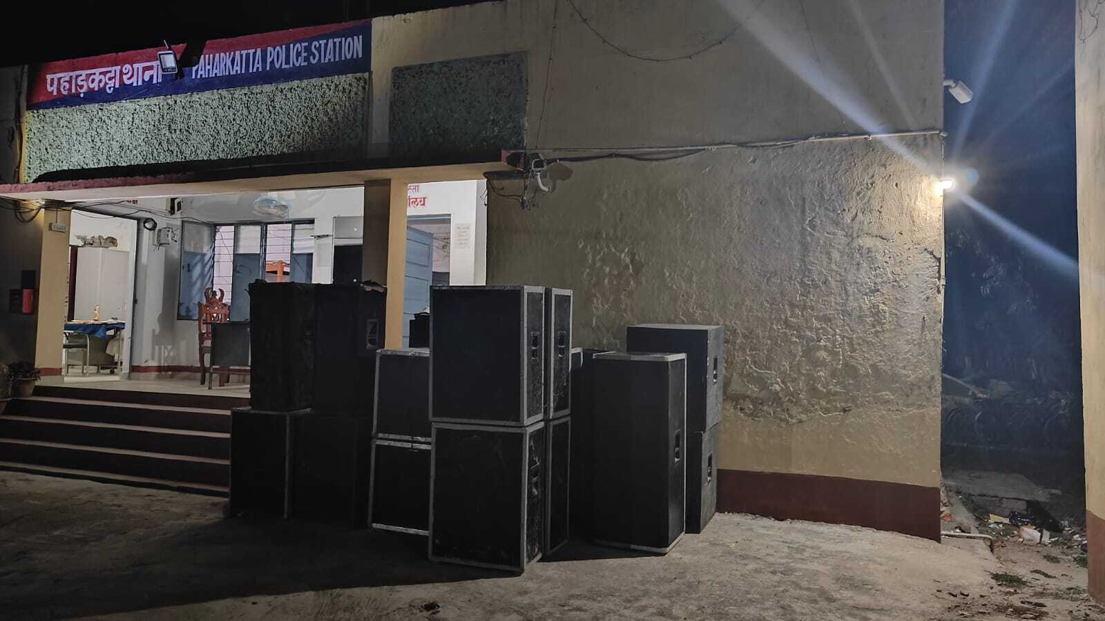 पहाड़कट्टा. आगामी रामनवमी पर्व को लेकर पहाड़कट्टा पुलिस पूरी तरह अलर्ट है. थानाध्यक्ष धनजी कुमार ने शुक्रवार को थाना क्षेत्र के आधे दर्जन दुकानों से डीजे साउंड सेट जब्त किया है. थानाध्यक्ष धनजी कुमार ने बताया कि जिला प्रशासन के निर्देशानुसार रामनवमी की शोभायात्रा में डीजे पर पूर्ण रूप से प्रतिबंध लगाया गया है. पहाड़कट्टा थाना क्षेत्र के दामलबाड़ी, सीताझाड़ी, छत्तरगाछ आदि इलाके में 6 अप्रैल को रामनवमी के उपलक्ष्य में शोभायात्रा यात्रा निकाली जायेगी. जिसमें डीजे का उपयोग न हो इसके लिए रामनवमी के दिन तक क्षेत्र के सभी डीजे संचालकों को गाइडलाइन की जानकारी देते हुए उनके डीजे को जब्त कर थाना परिसर में रखा गया है, जो शोभायात्रा के बाद उन्हें विधिवत वापस कर दिया जाएगा. शोभायात्रा में असामाजिक तत्वों और हुड़दंगियों पर प्रशासन की नजर रहेगी. रामनवमी को लेकर निकलने वाली शोभायात्रा के रूट चार्ट में बदलाव नहीं होगा. उन्होंने आमजनों से शांतिपूर्ण माहौल में शोभायात्रा निकालने की अपील की.