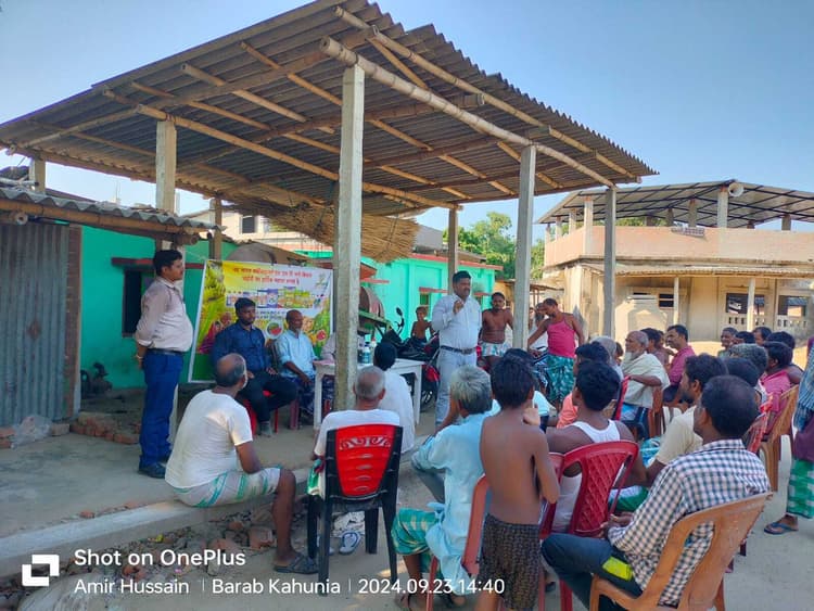 पोठिया.पोठिया ब्लॉक के धोबीडांगा गांव में नवा भारत फर्टिलाइजर एलएलपी कंपनी के द्वारा किसान गोष्ठी का आयोजन किया गया. कार्यक्रम की अध्यक्षता कंपनी के एग्रीकल्चरल अफसर मिस्टर आमिर हुसैन, एजीएम एके सेठी, एएमडीओ राजेश सिंह, टीम मैनेजर भारद्वाज और उनके सहयोगी कुमार जायसवाल ने किया. गोष्ठी में किसानों को जैविक खेती के बारे में विस्तृत जानकारी दी गई. बताया गया जैविक खेती करने से हमारे खेतो की उपजाऊ क्षमता बनी रहती है और फसल की गुणवत्ता बनी रहती है. और कम लागत भी लगता है और कम लागत में अधिक से अधिक उत्पादन एक मात्र जैविक खेती से ही किसानों को मिल सकता है. और साथ ही साथ रासायनिक उर्वरकों से होने वाला नुकसान के बारे में भी बताया गया कि रासायनिक उर्वरकों का उपयोग करने से हमारी मिट्टी सख्त हो रही है और हमारे स्वास्थ्य पर प्रभाव पड़ रहा है. यथा संभव जैविक खाद का ही ज्यादा से ज्यादा उपयोग करें. गोष्ठी मे मौजुद किसान अब्दुल कुद्दूस, अब्दुल ओहिद, एमडी यासीन, अबू बकर और मोजिबुर रहमान आदि शामिल थे.