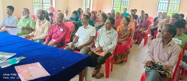 पोठिया . प्रखंड मुख्यालय स्थित ई किसान भवन के प्रांगण में सोमवार को कृषि विभाग के द्वारा खरीफ महाअभियान 2024 के तहत कार्यक्रम का आयोजन किया गया.इस मौके पर मौजूद किसानों को उन्नत खेती का तरीका बताया गया. कार्यक्रम का उद्घाटन सहायक प्राध्यापक मत्स्य विज्ञान अर्राराबारी डॉ नागार्जुन,कृषि विज्ञान केंद्र किशनगंज के वैज्ञानिक कन्हैया लाल, कृषि समन्वयक सह पोठिया नोडल अधिकारी सुमंत कुमार के द्वारा संयुक्त रूप से किया गया. मौके पर मौजूद कृषि समन्वयक सुमंत कुमार ने किसानों को संबोधित करते हुए कहा कि धान बीज का वितरण प्रारंभ हो गया है.किसानों को अनुदानित दर पर बीज का वितरण कृषि विभाग द्वारा किया जा रहा है.जो भी इच्छुक किसान हैं वे आनलाइन आवेदन कर धान का बीज ले सकते हैं. वैज्ञानिक कन्हैया लाल ने कम लागत पर उन्नत खेती के बारे में किसानों को विस्तारपूर्वक जानकारी दी.वहीं सहायक प्राध्यापक मत्स्य विज्ञान अर्राबाड़ी डॉ नागार्जुन ने कम लागत में पैदावार अच्छी हो इसके लिए किसानों को उन्नत बीज एवं बोआई के बारे में जानकारी दी एवं सही तरीके से खेती करने का किसानों को प्रशिक्षण दिया.वहीं कृषि समन्वयक सुमंत कुमार ने किसानों को पराली जलाने से होने वाले नुकसान के बारे में बताया.साथ ही खरीफ फसलों में शामिल धान,अरहर,जैविक खेती तथा समय- समय पर खेतों की मिट्टी जांच आदि विषयों पर किसानों को जानकारी दी. इस मौके पर कृषि समन्वयक अंसार अहमद रिजवी,सहायक तकनीक प्रबंधक डमरूधर सरस्वती सहित काफी संख्या में किसान उपस्थित थे.