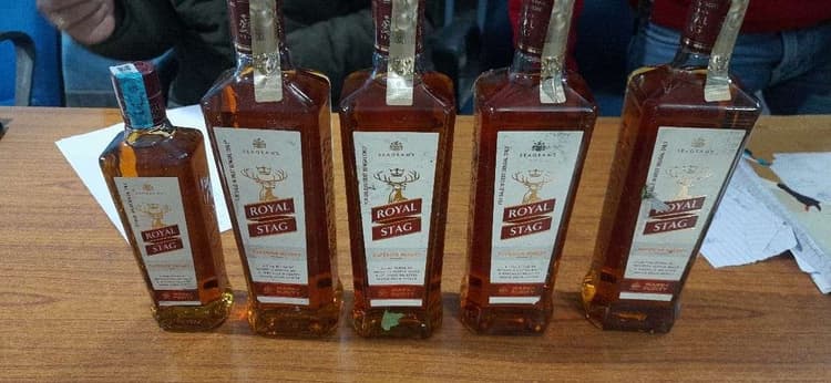 ठाकुरगंज ठाकुरगंज पुलिस ने अवैध शराब बिक्री को लेकर चलाए अभियान के तहत पांच बोतल विदेशी शराब जब्त किया है. हालांकि इस अभियान के दौरान किसी तस्कर की गिरफ़्तारी नहीं हो पाई है. एंटी लिकर दस्ता प्रभारी शैलेश कुमार के नेतृत्व में स्टेशन रोड के समीप यह कार्रवाई की गयी. ठाकुरगंज थानाध्यक्ष मकसूद आलम अशर्फी ने बताया कि पुलिस को सूचना मिली थी कि एक तस्कर शहर में शराब का होम डिलीवरी करने के फिराक में है. जिसके बाद एंटी लिकर दस्ता प्रभारी के नेतृत्व में अस्पताल चौक से रेलवे स्टेशन जाने वाली सड़क पर पुलिस नजर रखी हुई थी. तभी झोला में लेकर एक संदिग्ध युवक अर्जुन टी स्टाल से कुछ दूरी पर घूम रहा था. पुलिस टीम पर नजर पड़ते ही झोला फेंक कर फरार हो गया. जब पुलिस ने झोला को खोला तो उसमें पांच बोतल विदेशी शराब पायी गयी. तस्कर शराब की बोतलों को छिपाने के लिए झोले में साग भर रखा था. फरार तस्कर की पहचान राजा चौधरी प्याज पट्टी निवासी के रूप में हुई है. फरार तस्कर पर मद्य निषेध अधिनियम के तहत मामला दर्ज करके पुलिस अग्रिम कार्रवाई में जुटी हुई है.