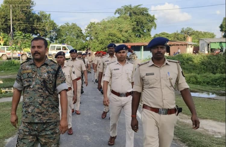 पहाड़कट्टा. आगामी मुहर्रम पर्व को लेकर पोठिया पुलिस पूरी तरह सतर्क है.शांति एवं सौहार्द बनाए रखने के उद्देश्य से शनिवार को इंस्पेक्टर सह थानाध्यक्ष अंजय अमन के नेतृत्व में थाना क्षेत्र के चौक एवं बाजार में फ्लैग मार्च निकाला गया. पोठिया थाना से फ्लैग मार्च पोठिया बाजार का भ्रमण करते हुए चौक और रेलवे स्टेशन पहुंचा. थानाध्यक्ष श्री अमन ने बताया कि पोठिया में हर पर्व-त्योहार दोनों समुदाय के लोग मिल-जुलकर सौहार्दपूर्ण वातावरण में मनाते आ रहे है. हमें इस परंपरा को हमेशा कायम रखना है. पर्व के दिन अफवाहों पर ध्यान नही देना है. यदि किसी जगह से अफवाह की बात सामने आती है तो आमजन प्रशासन एवं थाना को इसकी सूचना अवश्य दें. उन्होंने कहा कि ताजिया जुलूस को लेकर रूट चाट निर्धारित है. पुलिस प्रशासन ताजिया जुलूस के रूट का निरीक्षण कर रही है. पर्व को लेकर असामाजिक तत्वों पर प्रशासन की कड़ी नजर रहेगी. सघन गश्ती के साथ चिंहित जगहों एवं कर्बला मैदान में मजिस्ट्रेट और पुलिस पदाधिकारी के साथ सशस्त्र-बल को तैनात किया गया है. उन्होंने समाज के हर वर्ग के लोगों से अनुरोध करते हुए कहा कि शांतिपूर्ण तरीके से मेले का आनंद लें. फ्लैग मार्च में थानाध्यक्ष अंजय अमन, एसआई अखिलेश कुमार, एसआई बीएन हेम्ब्रम, एसआई विपिन कुमार सिंह, एसआई विकास कुमार सहित दर्जनों पुलिस बल मौजूद थे.