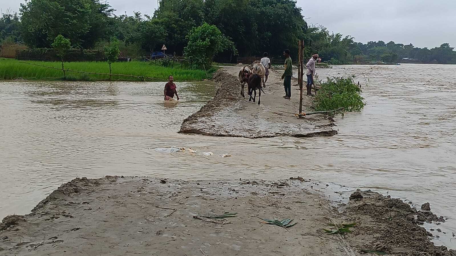 टेढ़ागाछ प्रखंड में बाढ़ का कहर: लोधाबाड़ी के पास मुख्यमंत्री सड़क टूटी, दर्जनों पंचायतों का संपर्क बाधित. टेढ़ागाछ नेपाल की तराई क्षेत्र में लगातार हो रही मूसलाधार बारिश का असर अब प्रखंड क्षेत्र होकर बहने वाली नदियों में देखने को मिल रहा है. कनकई, गोरिया और रेतुआ नदियों में जलस्तर में लगातार इजाफा हो रहा है. नदियों के उफान और तेज धारा के कारण किनारे बसे गांव के लोगों में भय और दहशत का माहौल बन गया है. तेजी से निचले इलाके में बाढ़ का पानी प्रवेश कर रहा है. टेढ़ागाछ-बहादुरगंज सड़क मटियारी सड़क के ऊपर से पानी का तेज बहाव हो रहा हैं. प्रखंड से जिला मुख्यालय का संपर्क टूटने की कगार पर है. आवागमन में लोगों का भारी परेशानी हो रही है. लोग अपनी जान को हथेली पर रखकर पानी के तेज बहाव में आने जाने को मजबूर हैं. वहीं मटियारी पंचायत के माली टोला, बावन टोली, कुराटोली में तेजी से बाढ़ का पानी लोगों के घरों में प्रवेश कर रहा है. वहीं बीबीगंज में भी स्थिति कफ खराब है. बाढ़ का पानी से पंचायत भवन पूरी तरह जलमग्न हो गई है. सड़कों के ऊपर से भी पानी का बहाव हो रहा है. तेजी से फैल रहे बाढ़ के पानी से 2017 की याद लोगों को सताने लगी है. यह सड़क उत्क्रमित मध्य विद्यालय झुनकी मुसहरा से होते हुए लोधाबाड़ी के रास्ते डोरिया गांव तक जाती है. हाल के दिनों में आई बाढ़ के पानी ने लोधाबाड़ी के समीप इस मुख्य सड़क को बुरी तरह काट दिया है. सड़क टूटने से दर्जनों पंचायतों का संपर्क प्रखंड मुख्यालय से पूरी तरह बाधित हो गया है.