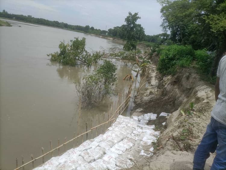 बेलवा. किशनगंज प्रखंड के बेलवा पंचायत के पश्चिम बस्ती एवं बीच बस्ती में शुक्रवार को पूर्व जदयू विधायक मास्टर मुजाहिद आलम ने डोंक नदी से हुए कटाव का निरीक्षण किया. पिछले दिनों नदी में बढ़े पानी से बेलवा के पश्चिम बस्ती एवं बीच बस्ती में काफी तबाही हुई है. पानी घटने के बाद कटाव की भयंकरता अभी से दिखाई पड़ रही है. बेलवा बस्ती की कई एकड़ जमीन नदी में विलीन हो चुकी है. अब नदी की कटान लोगों की घरों तक पहुंच चुकी है. समय रहते यदि कटाव को नहीं रोका गया तो बेलवा बस्ती के लोगों को नदी की वजह से अन्य जगहों पर पलायन करने के लिए मजबूर होना पड़ेगा. कटाव स्थल पर पहुंचे पूर्व जदयू विधायक मास्टर मुजाहिद आलम ने प्रशासनिक अधिकारियों को कटाव की जानकारी देते हुए कटाव हुए स्थल पर कटाव रोधी कार्य करने की अपील की है. ग्रामीणों ने बताया कि हर वर्ष नदी का कटाव गांव की तरफ बढ़ रहा है. इस वर्ष के बाढ़ ने दर्जनों एकड़ जमीन को नदी में विलीन कर दिया है. अब नदी गांव के बिल्कुल समीप आ चुकी है एवं गांव पर कटाव का खतरा मंडरा रहा है. ग्रामीणों ने कटाव को रोकने के लिए जल्द से जल्द उचित कार्य करने की अपील की है. स्थल पर मीर लड्डन. फरोग हसन, परवेज आलम, नूर दिल, बप्पा कुमार डे, मो गुलाब, इंतखाबुर रहमान, मोफीज आलम, शाहबाज आलम,गुलनवाज राही, आरजू रेजा सहित दर्जनों ग्रामीण मौजूद थे.
