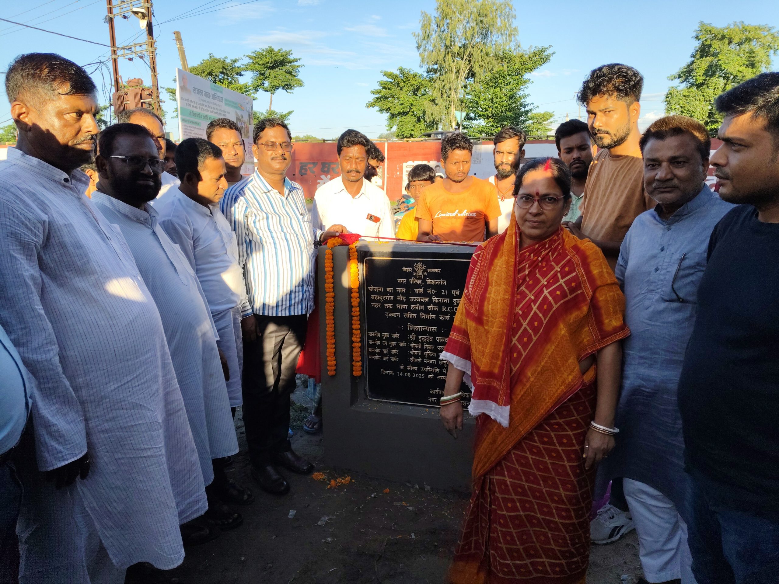 किशनगंज शहर के बहादुरगंज मोड़ वार्ड संख्या 21 में नाला के निर्माण कार्य का शिलान्यास गुरुवार को नगर परिषद के अध्यक्ष इंद्रदेव पासवान ने फीता काटकर किया. नगर परिषद अध्यक्ष इंद्रदेव पासवान ने कहा कि नगर का विकास पहली प्राथमिकता है. शिलान्यास के दौरान वार्ड पार्षद प्रतिनिधि रबीउल ने बताया कि नाला नहीं होने से लोगों को भी काफी परेशानी का सामना करना पड़ता था. बहादुरगंज मोड़ से नहर तक करोड़ 31 लाख 8 हजार की लागत से नाला निर्माण का कार्य कराया जाना है. शिलान्यास के दौरान पार्षद प्रतिनिधि रबीउल, अब्दुल गफुर, पार्षद देवेन यादव, पार्षद प्रतिनिधि अरविंद मंडल, वसीम अकरम, यूसुफ आदि मौजूद थे. वही शिलान्यास के बाद पार्षद ने नगर परिषद अध्यक्ष को वार्ड का भ्रमण करवाते हुए अन्य समस्याओं से अवगत करवाया.