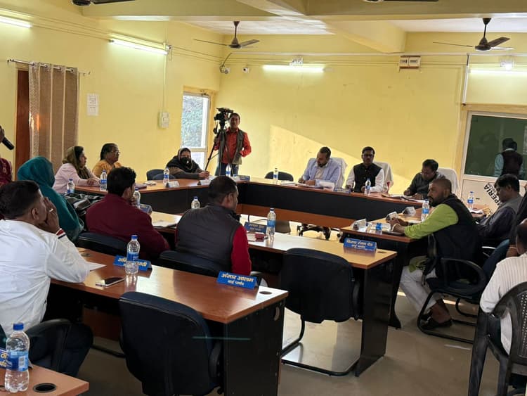 किशनगंज नगर परिषद कार्यालय के सभागार में नगर परिषद बोर्ड की बैठक शनिवार को आयोजित की गई. बैठक की अध्यक्षता नगर परिषद अध्यक्ष इंद्रदेव पासवान ने की. बैठक में पूर्व पीएम मनमोहन सिंह के निधन पर दो मिनट का मौन रख उन्हें श्रद्धांजलि दी गयी. बैठक में नगर परिषद अध्यक्ष इंद्रदेव पासवान ने शहर में साफ सफाई की व्यवस्था दुरुस्त हो उसके लिए एक साल की कार्य योजना बनाने का निर्देश दिया. साथ ही शहर को अतिक्रमण मुक्त करने पर भी चर्चा की. वहीं पार्षदों ने नगर परिषद क्षेत्र से जुड़ी अलग-अलग समस्याओं को बैठक में उठाया. वार्ड पार्षद मनीष जालान के द्वारा शहर में चल रहे अवैध बूचड़खानों को तत्काल बंद करवाने की मांग की. बैठक में बताया कि नगर परिषद ने साफ- सफाई को लेकर 18003099865 नंबर जारी किया है जिस पर सुबह 10 बजे से शाम 4 बजे तक साफ – सफाई को लेकर आम लोग कॉल कर सकते है. इस मौके पर वार्ड पार्षद सुशांत गोप, पार्षद शहनाज बेगम, पार्षद गायत्री साहा, पार्षद जमशेद आलम, पार्षद दीपक सरकार, पार्षद प्रतिनिधि संजय पासवान, पार्षद प्रतिनिधि अनिल सिंह, पार्षद प्रतिनिधि शफी अहमद, प्रतिनिधि अनवर आलम, प्रतिनिधि टुकटुक सरकार, पार्षद प्रतिनिधि अरविंद मंडल सहित अन्य लोग मौजूद थे. नगर परिषद अध्यक्ष इंद्रदेव पासवान ने कहा साफ-सफाई को लेकर टोल फ्री नंबर जारी किया गया है. सफाई को लेकर आम लोग इस टोल फ्री नंबर पर कॉल कर सकते हैं. नगर परिषद में स्थाई पुलिस बल नहीं रहने से काफी परेशानी होती है. इस मामले को लेकर एक वर्ष पूर्व जिला प्रशासन को पत्र लिखा गया था. लेकिन स्थिति जस की तस बनी हुई है. नगर परिषद की जमीन का मोटेशन नहीं होने को लेकर भी आक्रोश जताते हुए कहा कि राजस्व विभाग की लापरवाही के कारण मोटेशन नहीं हो रहा है. जिसकी वजह से परेशानी का सामना करना पड़ता है.
