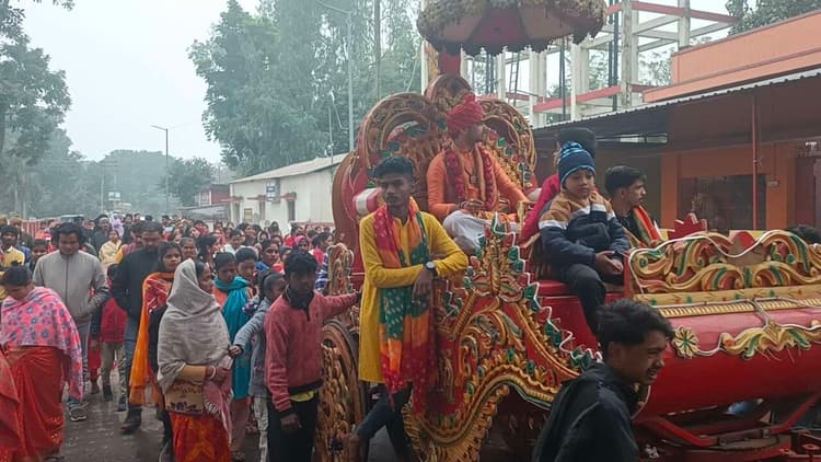 किशनगंज शहर के लोहारपट्टी स्थित शिव शक्ति धाम दुर्गा मंदिर के प्रांगण में नौ दिवसीय आयोजित श्री राम कथा समाप्त हुआ.अंतिम दिन शनिवार को सैकड़ों की संख्या में भक्तों ने शोभा यात्रा निकाली. शोभा यात्रा शिव शक्ति धाम दुर्गा मंदिर से शुरू होकर रेलवे कॉलोनी स्थित हनुमान मंदिर पहुंची, जहां भगवान हनुमान जी की पूजा अर्चना की गई. इसके बाद शोभा यात्रा पुनः कथा स्थल पर पहुंची, जहां कथावाचक अमन शास्त्री महाराज की मौजूदगी में भक्तों के द्वारा फूलों की होली खेली गई. फूलों की होली के दौरान भक्त झूम झूम कर नाचने लगे, जिससे पूरा वातावरण भक्ति से भर गया. इसके बाद महाप्रसाद का वितरण भक्तों के बीच किया गया. इस तरह 9 दिवसीय राम कथा महोत्सव का समापन हो गया. इस अवसर पर कथावाचक अमन शास्त्री महाराज ने कहा कि राम कथा महोत्सव का उद्देश्य भगवान राम के जीवन और उनके आदर्शों को लोगों तक पहुंचाना है. उन्होंने कहा कि भगवान राम के जीवन से हमें सत्य, न्याय और परोपकार की शिक्षा मिलती है. शोभा यात्रा में शामिल भक्तों ने बताया कि यह एक अनोखा और अविस्मरणीय अनुभव था, जिसे वे कभी नहीं भूल पाएंगे. उन्होंने कहा कि भगवान राम की कृपा से उन्हें इस महोत्सव में शामिल होने का अवसर मिला.