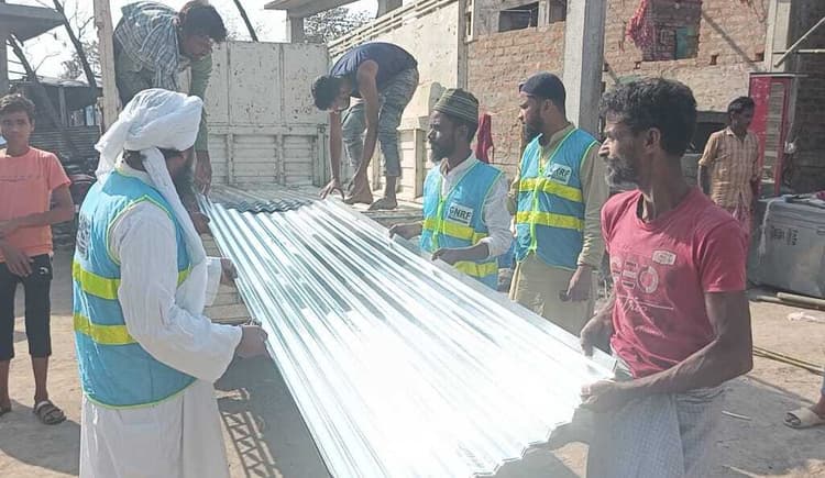 पोठिया. प्रखंड की टीपीझाड़ी पंचायत अंतर्गत कारीगांव में बीते दिनों हुई आगलगी की घटना के बाद शुक्रवार को दावते इस्लामी इंडिया के गरीब नवाज रिलीफ फाउंडेशन की ओर से एक दर्जन पीड़ित परिवारों के बीच राहत सामग्री के साथ घर निर्माण के लिए सामानों का वितरण किया गया. दरअसल, 15 मार्च की दोपहर कारीगांव में अचानक आग लग जाने से एक दर्जन से अधिक लोगों के आशियानें जलकर राख हो गए थे. जिसमें लोगों का कच्चा मकान सहित तमाम सामना जलकर राख हो गया था. इस मौके पर गरीब नवाज रिलीफ फाउंडेशन के सोहेल आलम,आसिफ रब्बानी,मोहम्मद आरिफ, मोहम्मद नाजिर आलम सहित अन्य मौजूद थे.