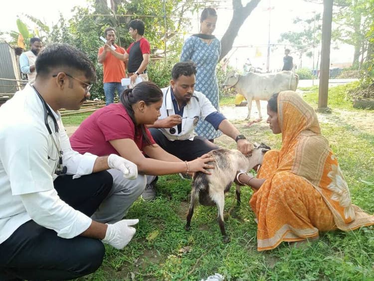 पहाड़कट्टा.पशु चिकित्सा एवं पशु विज्ञान महाविद्यालय अर्राबाड़ी के द्वारा शुक्रवार को 62वीं सुबह-सबेरे किसान संवाद एवं पशु चिकित्सा शिविर का आयोजन रायपुर पंचायत के धुमनिया गांव में किया गया. इस दौरान 29 पशुपालक परिवारों से संपर्क कर पशुपालन से संबंधित वैज्ञानिक गतिविधियों एवं पशुपालन महाविद्यालय में उपलब्ध चिकित्सा सुविधाओं की जानकारी दी गयी. इस कार्यक्रम के आयोजक डॉ हेमंत कुमार, सहायक प्राध्यापक ने बताया कि किसान संवाद कार्यक्रम का आयोजन महाविद्यालय अधिष्ठाता डॉ चंद्रहास के दिशा-निर्देश में किया गया. जिसका उद्देश्य पशुपालकों के द्वार पर चिकित्सा सुविधा उपलब्ध कराना एवं पशुपालन से संबंधित समस्याओं से अवगत होकर उनके निराकरण का प्रयास करना है. इस अवसर पर आयोजित पशुचिकित्सा शिविर में 60 पशुपालकों के 224 छोटे-बड़े जानवरों में गर्भधारण की समस्या, गर्भ की जांच, खान-पान एवं पाचन की समस्या, कृमि की समस्या, प्रजनन की समस्या एवं पशुओं में दूध उत्पादन से संबंधित विभिन्न प्रकार की समस्याओं का इलाज कर उचित परामर्श दिया गया तथा बीमारियों के निदान से संबंधित दवाइयों, खनिज तत्वों, कृमिनाशकों का निःशुल्क वितरण किया गया. किसान संवाद कार्यक्रम में पशुपालकों ने उत्साह पूर्वक भाग लिया एवं पशुपालन से संबंधित समस्याओं के निराकरण के प्रयास के लिए वैज्ञानिकों एवं महाविद्यालय का आभार व्यक्त किया. शिविर के सफल आयोजन में महाविद्यालय के 21 वैज्ञानिकों एवं इंटरनी छात्रों ने योगदान दिया.