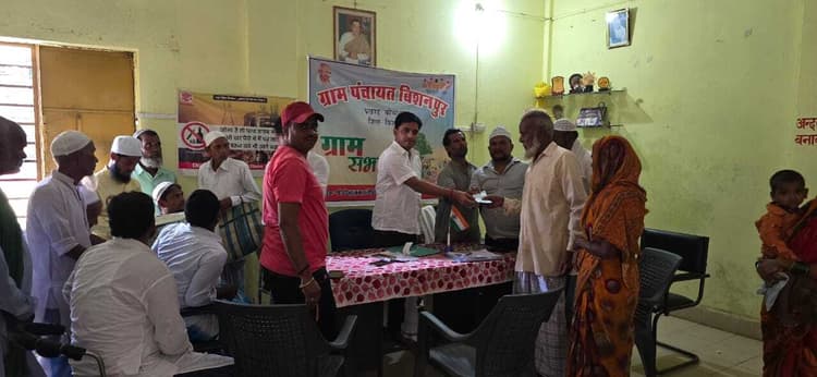 कोचाधामन प्रखंड के बिशनपुर मंडी स्थित ग्राम पंचायत कार्यालय बिशनपुर में शुक्रवार को कबीर अंत्येष्टि योजना के अंतर्गत दर्जनों लाभुकों को स्थानीय मुखिया पिंटू चौधरी तीन – तीन हजार रुपए का चेक वितरण किया. मुखिया पिंटू चौधरी कहा कि मेरे प्रयास रहता है कि लाभुकों को योजनाओं का लाभ ससमय मिले.उन्होंने कहा कि विगत तीन वर्षों में पंचायत के छुटे हुए सैकड़ों लोगों को वृद्धा पेंशन योजना लाभ मेरे द्वारा दिलवाने का काम किया गया है. इस मौके पर उप मुखिया सोहराब आलम, वार्ड सदस्य शहंशाह अंसारी, महेश कुमार राम, लाल बाबू दास, अवसर आलम, स्वच्छता पर्यवेक्षक प्रफुल्ल झा, राहत आलम समेत दर्जनों ग्रामीण मौजूद थे.