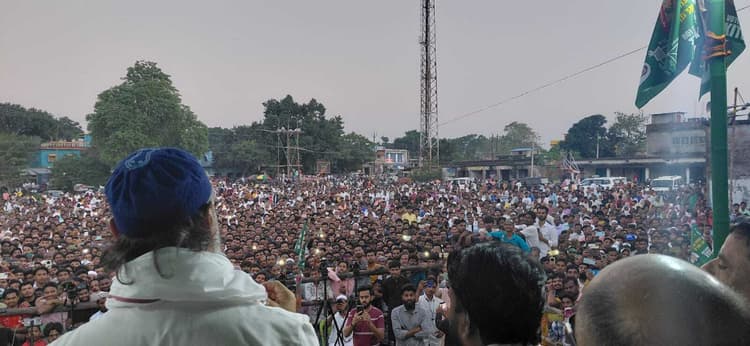 -किशनगंज प्रखंड के बेलवा में एएमआईएम सुप्रिमो ओवैसी ने किया जनसभा को संबोधित बेलवा बिहार विधानसभा चुनाव के दूसरे चरण को लेकर सीमांचल की राजनीति गर्माती जा रही है, शुक्रवार को ऑल इंडिया मजलिस-ए-इत्तेहादुल मुस्लिमीन के राष्ट्रीय अध्यक्ष असदुद्दीन ओवैसी ने किशनगंज प्रखंड के बेलवा में एक बड़ी जनसभा को संबोधित करते हुए पतंग छाप पर वोट करने का अपील की. इस दौरान ओवैसी ने कहा कि इस बार सरकार बदलने के लिए नहीं बल्कि सीमांचल के माहौल को बदलने के लिए वोट करने को कहा, उन्होंने कहा कि सीमांचल के लोग आजादी के बाद से अभी तक अपने रोजगार के लिए अन्य जगहों पर पलायन कर रहे हैं, यहां के लोगों के लिए रोजगार नहीं है, जिस कारण लोग बाहर रहने को मजबूर हैं. तेजस्वी पर तंज कसते हुए उन्होंने कि वह उम्र में कच्चा, दिमाग से कच्चा और जुबान से एक नंबर का झूठा है. उन्होंने कहा कि तेजस्वी ने इजहार असफी के साथ बहुत बड़ा धोखा किया है जिसका जवाब उन्हें 11 तारिक को मिलेगा. जनसभा में बड़ी संख्या में लोग शामिल हुए जनसभा में युवा की संख्या अधिक देखी गई, मौके पर सरवर आलम, शम्स आगाज सहित दर्जनों कार्यकर्ता मौजूद थे.