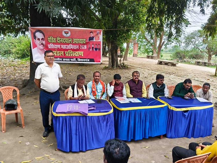 किशनगंज. भारतीय जनता पार्टी किशनगंज ग्रामीण मंडल में पंडित दीनदयाल उपाध्याय महाप्रशिक्षण अभियान की शुरुआत रविवार को स्थानीय औधरा धाट काली मंदिर प्रांगण में की गयी. महाप्रशिक्षण वर्ग का उद्घाटन पंडित दीनदयाल उपाध्याय व श्यामा प्रसाद मुखर्जी के तैल चित्र पर दीप प्रज्वलित कर, पुष्पांजलि अर्पित कर, वंदे मातरम गीत व प्रशिक्षण वर्ग गीत के साथ हुआ. प्रशिक्षण में आए कार्यकर्ताओं का मोबाइल नंबर के साथ पंजीकरण किया गया व सरल ऐप डाउनलोड करवाया गया.