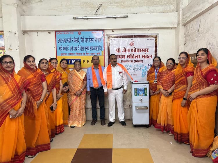किशनगंज.अखिल भारतीय तेरापंथ महिला मंडल के निर्देश पर किशनगंज महिला मंडल द्वारा ने एक बूंद एक सागर जल संरक्षण कार्यशाला आयोजित की. कार्यक्रम का शुभारंभ मंडल की बहनों ने नमस्कार महामंत्र के साथ किया. महिला मंडल अध्यक्ष संतोष दुग्गड ने सभी का स्वागत किया और कविता के माध्यम से जल के महत्व की जानकारी प्रदान की. आज हमें एक बूंद एक सागर जल संरक्षण इस विषय पर हमें बहुत ही सुन्दर तरीके से समझाया और कहा कि जब तक है पृथ्वी पर जल तब तक सुरक्षित है सबका कल. अगर हम बीना मतलब के अगर पानी का व्यर्थ गवाएंगे तो फिर आने वाले कल में खूद को प्यास कैसे बुझाएंगे. प्रतिदिन के कार्यकलापों में घर के काम काज में, रसोई घर में, नहाने में और भी जैसे पेड़ पौधे में भी पानी का उपयोग करते समय जागरूकता रखें. जैन धर्म के माध्यम से बताया कि अगर हम जल का उपयोग कम करते है तो इसके दो फायदे है एक तो जल का संरक्षण दूसरा कर्मों की निर्जरा. कार्यशाला में 11 बहिनों की उपस्थिति रही. कार्यक्रम के पश्चात किशनगंज महिला मंडल की बहिनों ने रेलवे स्टेशन पर वाटर कूलर का इनॉग्रेशन किया. स्टेशन मास्टर दीपक कुमार एंव दिलीप ठाकुर के द्वारा उद्घाटन किया गया. मंडल के अध्यक्ष संतोष देवी दुग्गड ने दोनों स्टेशन मास्टर को पट्टीका उड़ा कर उनको सम्मानित किया. कैफे, फूड स्टॉल, दवाई की दुकानों पर एवं मॉल के बाहर सेव वाटर के पोस्टर लगाए गए और वहां भी सभी को जल के महत्व के बारे में बताया गया. इस कार्यक्रम में अध्यक्ष संतोष देवी दुग्गड, उपाध्यक्ष मंजू देवी दफ्तरी, उपाध्यक्ष प्रभादेवी बैद, मंत्री ममता दुग्गड, मीडिया प्रभारी स्वाति दफ्तरी, निवर्तमान मंत्री रचना बोथरा एवं कार्यकारी सदस्य में लता बैद, स्नेहलता बैद, मंजू पटवारी एवं अमित बांठिया की उपस्थिति थी.