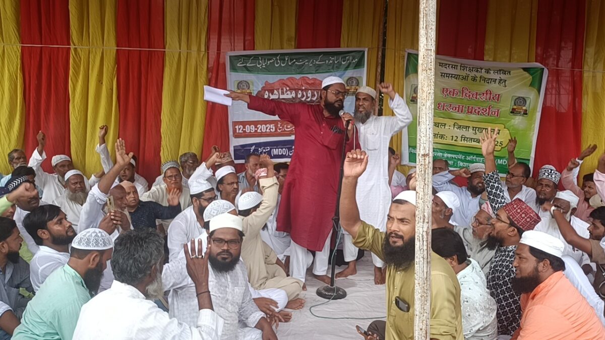 अपनी विभिन्न मांगों को ले मदरसा शिक्षकों व कर्मी गये अनिश्चितकालीन हड़ताल पर