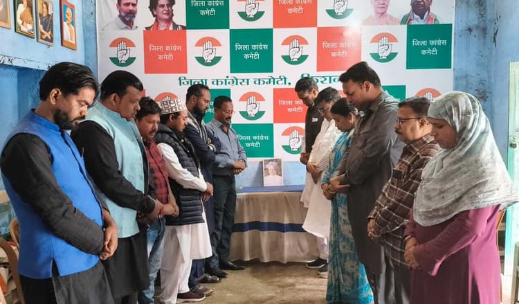 किशनगंज शहर के महावीर मार्ग स्थित जिला कांग्रेस कार्यालय राजीव गांधी आश्रम में पूर्व प्रधानमंत्री मनमोहन सिंह के निधन पर कांग्रेस नगर अध्यक्ष सजल कुमार साहा की अध्यक्षता में शोकसभा का आयोजन किया गया जिसमें दिवंगत आत्मा की शांति के लिए दो मिनट का मौन रखा गया और उन्हें श्रद्दांजलि अर्पित की गयी. इस दौरान मुख्य रूप से कांग्रेस जिला उपाध्यक्ष अरुण कुमार साहा, जिला प्रवक्ता जुल्फेकार अंसारी, शहाबुल अख्तर, जिला उपाध्यक्ष कांग्रेस तौसिफ अंजर, सोमेन्द्र बहादुर, इला देवी, साइदा खातुन, शंभू यादव, हाफिज मुदस्सिर, अजहर आलम, गौतम कुमार, सुभम कुमार सहित पार्टी नेता व कार्यकर्ता मौजूद थे. कांग्रेस सांसद डॉ मो जावेद आजाद ने शोक व्यक्त करते हुए कहा कि पूर्व प्रधानमंत्री मनमोहन सिंह भारतीय अर्थव्यवस्था के आधुनिक निर्माता थे. देश ने विजनरी स्टेट्समैन और दिग्गज अर्थशास्त्री खो दिया. उन्होंने करोड़ों भारतीयों को जिंदगी बदली और मिडिल क्लास का निर्माण किया. उनकी विनम्रता और अर्थशास्त्र की गहरी समझ ने देश को प्रेरित किया. कांग्रेस विधायक इजहारुल हुसैन ने कहा कि डॉ. मनमोहन सिंह विख्यात अर्थशास्त्री थे. उनके योगदान को देश हमेशा याद रखेगा.