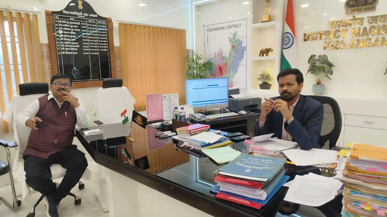 किशनगंज. पूर्व विधायक सह जदयू जिलाध्यक्ष मुजाहिद आलम ने जिले की विभिन्न समस्याओं को लेकर जिला पदाधिकारी विशाल राज से उनके कार्यालय में मिलकर मांग पत्र सौंपा. मांगपत्र पर डीएम ने उचित कार्रवाई का भरोसा दिलाया. जदयू जिलाध्यक्ष मुजाहिद आलम द्वारा सौंपे गए मांगपत्र में बिशनपुर को नगर पंचायत बनाने के संबंध में स्थानीय जनप्रतिनिधियों, व्यापारियों, किसानों के विरोध को देखते हुए इस संबंध में जिला पदाधिकारी किशनगंज को मांगपत्र सौंप कर उचित पहल करने का आग्रह किया है. वहीं प्रधानमंत्री जन विकास कार्यक्रम के तेहत कोचाधामन प्रखंड के बिशनपुर, ठाकुरगंज प्रखंड, पोठिया प्रखंड एवं बहादुरगंज प्रखंड में डा कलाम विज्ञान आवासीय विद्यालय निर्माण के संबंध में. इस संबंध में जिला पदाधिकारी किशनगंज द्वारा बताया गया कि प्रस्ताव अल्पसंख्यक कल्याण विभाग बिहार पटना को आगे की कार्रवाई हेतु भेजा गया है. साथ ही असुरा निशन्दरा घाट पर कनकई नदी में पुल निर्माण हेतु एलाइनमेंट को लेकर हुए विवाद के निपटारे के संबंध में, आईवीएफ के नाम पर ठगी के गोरखधंधे की जांच के संबंध में, सदर अस्पताल किशनगंज में रोगी कल्याण समिति के गठन के संबंध में सहित अन्य शामिल है. इस दौरान पैक्स अध्यक्ष निसार कौसर, यासिर अराफात,सुरज रजक,मोजीबुर रहमान सहित अन्य लोग मौजूद थे.
