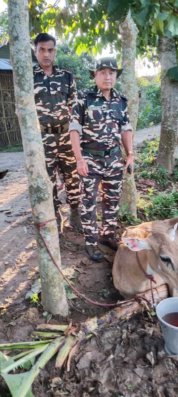 दिघलबैंक नेपाल की जंगल से भटककर रविवार को एक घायल नीलगाय धनतोला पंचायत के सीमावर्ती बालूबाड़ी कामत गांव में आ गई.ग्रामीणों ने सूझबूझ दिखाते हुए एसएसबी जवानों की मदद से उसे सुरक्षित पकड़ लिया और वन विभाग के हवाले कर दिया. नीलगाय को देखने के लिए गांव में भारी संख्या में लोगों की भीड़ जुट गई. ग्रामीणों के अनुसार दोपहर करीब दो बजे नेपाल की दिशा से आई यह नील गाय धान के खेतों में घायल अवस्था में दौड़ती देखी गई. स्थानीय लोगों ने काफी मशक्कत के बाद उसे पकड़ लिया और घटना की सूचना तुरंत एसएसबी बालूबाड़ी बीओपी के कमांडर एसआई प्रशांत प्रकाश को दी. सूचना मिलते ही एसएसबी टीम मौके पर पहुंची जिसमें असिस्टेंट कमांडेंट प्रियरंजन चकमा भी साथ थे.उन्होंने नीलगाय की सुरक्षा सुनिश्चित करते हुए वन विभाग को जानकारी दी. वन विभाग की टीम बालूबाड़ी कामत पहुंची. जिसमें बहादुरगंज रेंज के वनरक्षी रोशन कुमार शामिल थे. घायल नीलगाय को अपने कब्जे में ले लिया.उन्होंने बताया कि नीलगाय का प्राथमिक उपचार कराया जा रहा है और वरीय अधिकारियों के निर्देशानुसार उसे जल्द ही किसी सुरक्षित वन क्षेत्र में छोड़ दिया जाएगा.इस पूरी कार्रवाई में ग्रामीणों, एसएसबी जवानों और वन विभाग के कर्मियों की संयुक्त तत्परता से नीलगाय की जान बचाई जा सकी.स्थानीय लोगों ने इस मानवीय पहल की सराहना की.