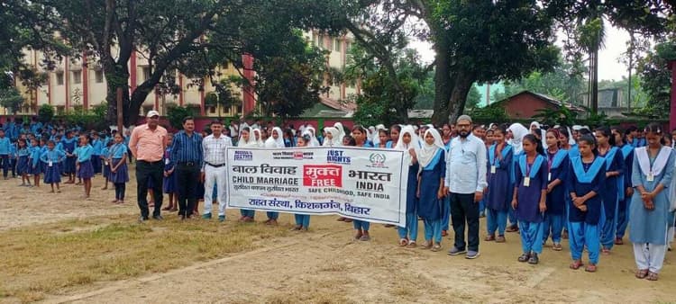 किशनगंज.जिले में बाल विवाह मुक्त अभियान के तहत एक्सेस टू जस्टिस अभियान तथा सहयोगी संस्था राहत के नेतृत्व में हजारों लोगों को बाल विवाह के प्रति जागरूक किया गया. साथ ही प्रत्यक्ष अप्रत्यक्ष रूप से बाल विवाह में शामिल नहीं होने की शपथ दिलवाई गयी. राहत संस्था की सचिव डॉ फरजाना बेगम ने कहा कि नोबेल पुरस्कार विजेता कैलाश सत्यार्थी के बाल विवाह मुक्त भारत के सपने को भारतवर्ष ही नहीं पूरे विश्व में विभिन्न सामाजिक संगठनों संबंधित विभागों के सहयोग से बाल विवाह मुक्त अभियान कार्यक्रम चलाया जा रहा है. यह कार्यक्रम एक पखवाड़ा तक चलेगा. उन्होंने आगे बताया कि इस क्रम में किशनगंज के जिला पदाधिकारी विशाल राज, बाल संरक्षण इकाई के सहायक निदेशक रविशंकर तिवारी का सहयोग तथा मार्गदर्शन काफी सराहनीय है. उनके मार्गदर्शन में संस्था के साथ-साथ संबंधित विभाग भी कार्यक्रम को सफल बनाने में पूरी तरह सहयोग कर रहा है.
