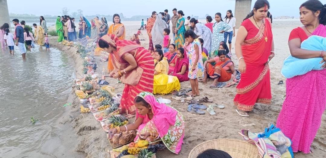 पहाड़कट्टा. सूर्योपासना का महापर्व चैती छठ पूजा शुक्रवार को उदीयमान भगवान भास्कर को अर्घ्य प्रदान करने के पश्चात समाप्त हो गया. पोठिया प्रखंड के डोंक नदी स्थित सातमेढ़ी घाट, ब्लदिया घाट, महानंदा नदी के कस्बा कलियागंज घाट, चमानी घाट आदि घाटों में लोगों ने पारंपरिक रीति-रिवाज के साथ चैती छठ मनाया. इस दौरान छठव्रती विभिन्न प्रकार की पूजा सामग्री के साथ गुरुवार की संध्या अस्ताचलगामी तथा शुक्रवार की सुबह उदीयमान भगवान भास्कर को अर्घ्य प्रदान किया. श्रद्धालुओं ने अपने परिवार व समाज के लोगों के लिए सुख, समृद्धि, शांति, यश, धन, वैभव के प्राप्ति की कामना की. लोगों ने छठव्रतियों की पांव छूकर आशीर्वाद लेने के बाद उनके हाथ का प्रसाद ग्रहण किया. त्योहार पर सुहागिन महिलाएं एक-दूसरे की मांग में सिंदूर लगाकर सदा सुहागिन रहने की कामना की. ईधर चैती छठ के मद्देनजर पहाड़कट्टा थाना क्षेत्र अंतर्गत सातमेढ़ी घाट पर छत्तरगाछ कैम्प प्रभारी राजू कुमार द्वारा दलबल के साथ सुरक्षा-व्यवस्था को लेकर तैनात दिखें. पहाड़कट्टा थानाध्यक्ष धनजी कुमार, पोठिया थानाध्यक्ष अंजय अमन,अर्राबाड़ी थानाध्यक्ष कुणाल कुमार के द्वारा भी विभिन्न छठ घाटों का जायजा लिया गया.