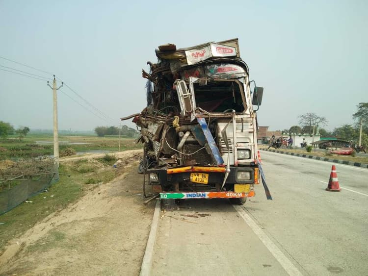 विशनपुर कोचाधामन थाना क्षेत्र के एनएच 327ई अररिया- बहादुरगंज मार्ग सपटीया चौक पर शुक्रवार के देर रात्रि में विपरीत दिशा से आ रही दो ट्रकों के बीच आमने- सामने टक्कर हो गयी. टक्कर इतना जबरदस्त था कि दोनों ट्रकों का अगला हिस्सा आपस में चिपक गया तथा तेज आवाज सुनकर आसपास के गांव से लोग दौड़कर एनएच पर पहुंच गये. इसी बीच इंजन में भी आग धधक रही थी. दुर्घटना के बाद मौके पर एसएचओ मौके पर पहुंचे. इस दुर्घटना में एक ट्रक चालक की मौके पर ही मौत हो गयी जबकि दूसरे चालक को गंभीर अवस्था में बेहतर इलाज के लिए पूर्णिया भेज दिया गया. वहीं क्रेन मंगवाकर दोनों ट्रक के जलते सटे इंजन को अलग करवाया गया.