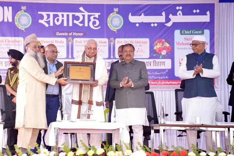दीक्षांत समारोह में बिहार के राज्यपाल आरिफ मोहम्मद खान ने मुख्य अतिथि के रूप में शिरकत की किशनगंज शहर के रामपुर स्थित तौहीद एजुकेशनल ट्रस्ट ने संचालित प्रस्तावित इमाम बुखारी यूनिवर्सिटी में रविवार को आयोजित दीक्षांत समारोह में बिहार के राज्यपाल आरिफ मोहम्मद खान ने मुख्य अतिथि के रूप में शिरकत की. समारोह में उद्योग व पथ निर्माण मंत्री डॉ. दिलीप कुमार जायसवाल, भवन निर्माण विभाग मंत्री अशोक चौधरी, ट्रस्ट के चैयरमेन मौलाना मतिउर रहमान, विधायक कमरूल होदा मौजूद थे. दीक्षांत समारोह में ट्रस्ट के चैयरमेन ने अतिथियों का शॉल ओढ़ाकर स्वागत किया. इसके बाद राज्यपाल के हाथों छात्र-छात्राओं को प्रमाण पत्र वितरित किए गए. इस अवसर पर जामिया हमदर्द यूनिवर्सिटी के कुलपति प्रोफेसर अफसार आलम, इमाम बुखारी यूनिवर्सिटी के कुलपति डॉ. मोहम्मद इस्तियाक, डीएम विशाल राज, एसपी संतोष कुमार सहित अन्य गणमान्य लोग मौजूद रहे. क्या कहते हैं राज्यपाल समारोह में बोलते हुए राज्यपाल आरिफ मोहमद खान ने महिलाओं की प्रगति का जिक्र करते हुए कहा कि आज बच्चियां फाइटर प्लेन चला रही हैं और हर क्षेत्र में आगे बढ़ रही है. उन्होंने कहा कि कुदरत ने इंसान को सोचने समझने की शक्ति दी है. उन्होंने जोर दिया कि मेहनत करने वाले को ही सब कुछ मिलता है और परमात्मा हर किसी में आत्मा की शक्ल में मौजूद है. क्या कहते हैं मंत्री डॉ जायसवाल समारोह में उद्योग एवं पथ निर्माण मंत्री डॉ. दिलीप कुमार जायसवाल ने किशनगंज और सीमांचल क्षेत्र शिक्षा के विकास में सरकार की प्राथमिकता में है. सूबों में सड़कों और पुलों का तेजी से निर्माण हो रहा है. उन्होंने कहा कि आने वाले तीन महीनों में पूरे बिहार में यदि किसी सड़क में गड्ढा मिला तो इंजीनियर और संवेदक के खिलाफ सख्त कार्रवाई होगी. उन्होंने महिला शिक्षा पर भी अपने विचार व्यक्त किए. क्या कहा मंत्री अशोक चौधरी ग्रामीण विकास विभाग के मंत्री अशोक चौधरी ने कहा कि प्रधानमंत्री सड़क निर्माण योजना के तहत सीमांचल में सबसे अधिक सड़कें बन रही हैं. उन्होंने मानवता की सेवा को सबसे बड़ी सेवा बताते हुए कहा कि बिहार में जहां मुसलमानों की आबादी अधिक है, वहां शिक्षा के और अधिक विकास की जरूरत है. क्या कहा ट्रस्ट के चैयरमेन ट्रस्ट के चेयरमैन मौलाना मतीउर रहमान ने कहा कि यह दिन विद्यार्थियों और उनके अभिभावकों के लिए खुशी, गर्व और सफलता के अविस्मरणीय क्षण लेकर आया है. पूरा वातावरण ज्ञान, गरिमा और उज्ज्वल भविष्य की आशाओं से परिपूर्ण रहा. उन्होंने कहा कि तौहीद एजुकेशनल ट्रस्ट, किशनगंज उत्तर-पूर्वी बिहार का एक प्रसिद्ध, विश्वसनीय और प्रतिष्ठित शैक्षणिक, सामाजिक एवं तकनीकी संस्थान है. क्या कहा विधायक विधायक कमरूल होदा 