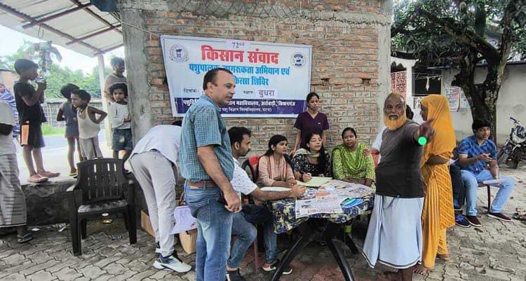 पहाड़कट्टा पशु चिकित्सा एवं पशु विज्ञान महाविद्यालय अर्राबाड़ी ने 72वीं किसान संवाद एवं पशु चिकित्सा शिविर का आयोजन शुक्रवार को पोठिया प्रखंड के बुधरा पंचायत में किया. इस कार्यक्रम के आयोजक डॉ विनोद कुमार एसोसिएट प्रोफेसर ने बताया कि किसान संवाद का आयोजन महाविद्यालय अधिष्ठाता डॉ चंद्रहास के दिशा-निर्देश में किया गया, जिसका उद्देश्य पशुपालकों के द्वार पर चिकित्सा सुविधा उपलब्ध कराना है. डॉ विनोद ने बताया कि बरसात के मौसम में ज्यादा नमी होने के कारण बाहरी एवं आंतरिक परजीवियों का प्रकोप पशुओं में बढ़ जाता है. शिविर के माध्यम से पशुपालकों को उचित परामर्श एवं पशु स्वास्थ्य में परजीवियों की भूमिका संबंधी विषय पर ज्ञानवर्धक पत्रिका का वितरण कर समुचित जानकारी दी गई. इस अवसर पर आयोजित पशुचिकित्सा शिविर में 55 पशुपालकों के 220 छोटे-बड़े पशुओं में खान-पान, पशु पोषण, कृमि, त्वचा संबंधी बीमारियां,गर्भ की जांच, गर्मी में ना आने की समस्या आदि से संबंधित समस्याओं का इलाज कर उचित परामर्श दिया गया तथा बीमारियों के निदान से संबंधित दवाइयों, खनिज तत्वों, कृमिनाशकों का निःशुल्क वितरण किया गय.इस दौरान पशुपालक परिवारों से संपर्क कर पशुपालन से संबंधित वैज्ञानिक गतिविधियों एवं पशुपालन महाविद्यालय में उपलब्ध चिकित्सा सुविधाओं की जानकारी दी गई. किसान संवाद कार्यक्रम में पशुपालकों ने उत्साह पूर्वक भाग लिया एवं पशुपालन से संबंधित समस्याओं के निराकरण के प्रयास के लिए वैज्ञानिकों एवं महाविद्यालय का आभार व्यक्त किया.