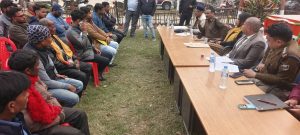 ठाकुरगंज. ठाकुरगंज में शनिवार को सरस्वती पूजा व शब-ए-बारात को लेकर शांति समिति की बैठक आयोजित की गयी. जिसकी अध्यक्षता ठाकुरगंज नप ईओ सह प्रशिक्षु आईएएस प्रदुम्न सिंह यादव ने की. बैठक में सरस्वती पूजा व शब-ए-बारात पर्व को शांतिपूर्ण वातावरण में मनाने पर विस्तारपूर्वक चर्चा की गयी. बैठक में पर्व के दौरान डीजे पर पूर्ण रूपेण प्रतिबंध, रूट चार्ट के अनुसार प्रतिमा का विसर्जन करने व पर्व को शांतिपूर्ण वातावरण में मनाने की अपील की गयी. वहीं एसडीपीओ मंगलेश सिंह ने तेज ध्वनि में लाउडस्पीकर नहीं बजाने, अफवाहों पर ध्यान नहीं देने, पूजा के दौरान किसी प्रकार का कोई अश्लील गाना नहीं बजाने की सख्त हिदायत दिया. मौके पर बीडीओ अहमर अब्दाली, थानाध्यक्ष मकसूद आलम अशर्फी, अंचलाधिकारी सुचिता कुमारी आदि के अलावे बड़ी संख्या में आमजन मौजूद थे.