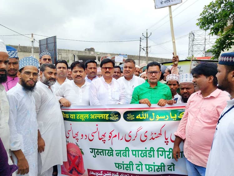 ठाकुरगंज रविवार को मुस्लिम संगठनों ने नासिक निवासी आध्यात्मिक गुरू रामगिरी महाराज की गिरफ्तारी की मांग को लेकर ठाकुरगंज में विरोध प्रदर्शन किया. इस्लाम के खिलाफ कथित आपत्तिजनक टिप्पणी के लिए रामगिरी महाराज की गिरफ्तारी की मांग की जा रही है. मुस्लिम जमात ठाकुरगंज के विरोध के बाद पुलिस अधिकारियों को प्राथमिकी दर्ज करने के लिए आवेदन सौंपा. यह प्रदर्शन पेट्रोल पंप नूरी मस्जिद से शुरू होकर ठाकुरगंज गांधी मैदान में पहुंचा। जहां रामगिरी महाराज पर 14 अगस्त को नासिक के सिन्नर में एक धार्मिक कार्यक्रम में आपत्तिजनक बयान देने के विरोध में विरोध प्रदर्शन किया गया. बताते चले इलाके में रामगिरी महाराज के खिलाफ आक्रोश बढ़ता जा रहा है, और इलाके के मुस्लिम समाज द्वारा उनकी गिरफ्तारी की मांग को लेकर प्रदर्शन किया गय .इस दौरान पूर्व विधायक नौशाद आलम ने कहा कि उन्होंने जानबूझकर ऐसे बयान दिए जिससे दो समुदायों के बीच तनाव उत्पन्न हो. बताते चले एक धार्मिक आयोजन के दौरान रामगिरी महाराज के इस्लाम और पैगंबर मोहम्मद के खिलाफ टिप्पणी करने के बाद यह विवाद शुरू हुआ, जिसका वीडियो सोशल मीडिया पर वायरल हो गया. पास्बान ए मिल्लत, सीमांचल ठाकुरगंज के बैनर तले निकाली गयी रैली मौलाना अयूब मजहर, हाफिज जुल्फिकार, मौलाना अब्दुर शकूर, मौलाना शमशेर राजा, हाफिज शफी अहमद, मौलाना जहूर इस्लाम, मौलाना अब्दुल कमयु, राजद नेता मुस्ताक आलम, मुखिया प्रतिनिधि गुलाम हसनैन, मुखिया प्रतिनिधि सोहेल उर्फ राजा, जिला परिषद प्रतिनिधि अहमद हुसैन, एमआईएम जिला अध्यक्ष रहीमुद्दीन उर्फ हैबर, गुलाम मोहिउद्दीन सहित मौजूद थे. प्रदर्शन के बाद एक प्रतिनिधि मंडल ने आदर्श थाना ठाकुरगंज पहुंचकर प्रशिक्षु डीएसपी सह थानाध्यक्ष आदिति सिंन्हा, एसडीपीओ टू मंगलेश कुमार सिंह, इंस्पेक्टर मकसूद अशरफी के उपस्थिति में प्राथमिक की दर्ज करने के लिए आवेदन दिया एवं रामगिरी महाराज पर कानूनी कार्रवाई करने की मांग की.