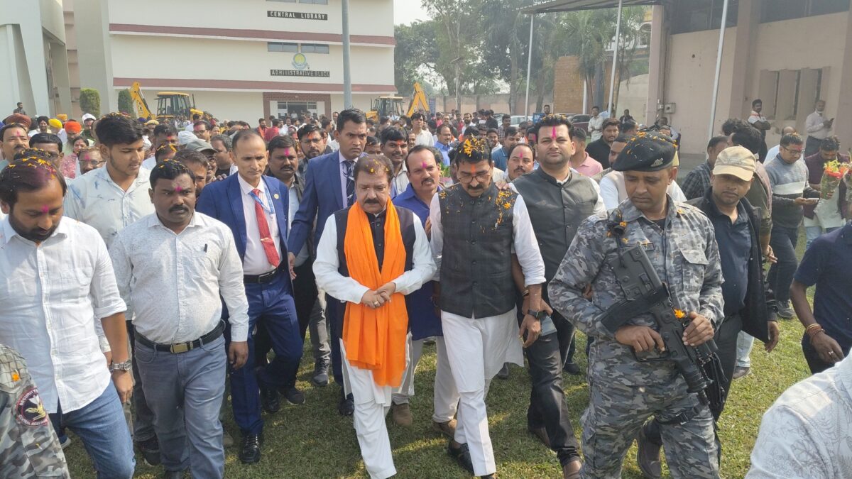 किशनगंज बिहार भाजपा प्रदेश अध्यक्ष सह बिहार सरकार के उद्योग मंत्री डॉ दिलीप कुमार जायसवाल मंत्रिमंडल गठन के बाद पहली बार किशनगंज पहुंचे जहां स्थानीय माता गुजरी मेडिकल कॉलेज में भाजपा नेताओं और कार्यकर्ताओं ने उनका जोरदार स्वागत किया. उनके स्वागत को लेकर भाजपा नेताओं के द्वारा विशेष तैयारी की गई थी. कार्यकर्ताओं के द्वारा उनके ऊपर जेसीबी से फूल बरसाए गए. ढोल नगाड़ों की धुन पर कार्यकर्ता थिरकते नजर आए. इस दौरान भारत माता की जय, डॉ दिलीप कुमार जायसवाल जिंदाबाद, पीएम नरेंद्र मोदी जिंदाबाद का नारा कार्यकर्ता लगा रहे थे. इस मौके पर पत्रकारों से बात करते हुए उद्योग मंत्री डॉ दिलीप कुमार जायसवाल ने कहा कि 49 दिनों में उन्होंने 38 जिले का प्रवास किया और उनका एक ही उद्देश्य था कि कार्यकर्ताओं से संवाद कर एक बार फिर से एनडीए की सरकार बनायी जाए और इसमें वे सफल हुए. उन्होंने आगे कहा कि एनडीए सरकार बिहार को कानून का राज देगी और शुक्रवार से ही अपराध मुक्त बिहार का मिशन शुरू हो चुका है. डॉ जायसवाल ने कहा कि कोई भी व्यक्ति गलत करना चाहेगा तो उसे तुरंत सलाखों के पीछे डाला जाएगा और स्पीडी ट्रायल चलाकर उसे सजा दिलवायी जायेगी. उन्होंने कहा कि उद्योग मंत्री के रूप में मेरी सबसे बड़ी जिम्मेदारी बनती है कि राज्य का युवा पलायन नहीं करे. उन्होंने कहा कि हमारी दो ही प्राथमिकता है पहला बिहार के युवाओं को रोजगार दिला और पलायन रोकना. डॉ जायसवाल ने कहा कि सभी को सरकारी नौकरी देना संभव नहीं है इसीलिए युवाओं को कैसे रोजगार मिले उसका रोड मैप तैयार करने जा रहा हूं. डॉ जायसवाल ने कहा कि अन्य देशों से लोग आकर यहां उद्योग स्थापित करें. इसके लिए उचित माहौल तैयार किया जायेगा. उद्योग मंत्री डॉ जायसवाल ने कहा कि 25 नवंबर को बिहार कैबिनेट की पहली बैठक होगी उसमें बिहार में उद्योग का जाल कैसे बिछे इसपर विचार विमर्श किया जायेगा. उन्होंने कहा कि भारत सरकार के साथ भी बैठक निर्धारित है जहां उद्योगों के विस्तार को लेकर चर्चा होगी. इस मौके पर भाजपा जिलाध्यक्ष गोपाल मोहन सिंह, अधिवक्ता शिशिर कुमार दास, कौशल किशोर यादव, बिहार राज्य अल्पसंख्यक आयोग के उपाध्यक्ष सरदार लखविंदर सिंह लक्खा, रेड क्रॉस के सचिव मिक्की साहा, पूर्व नप अध्यक्ष त्रिलोकचंद जैन, उद्यमी राजकरण दफ्तरी, तेजकरण दफ्तरी, पूर्व विधायक सिकंदर सिंह, हरीराम अग्रवाल, कौशल झा, शिवम साहा, अरविंद मंडल, अंकित सिंह, सुबोध माहेश्वरी, पवन सिंह सैकड़ों की संख्या में भाजपा के नेता और कार्यकर्ता मौजूद थे.