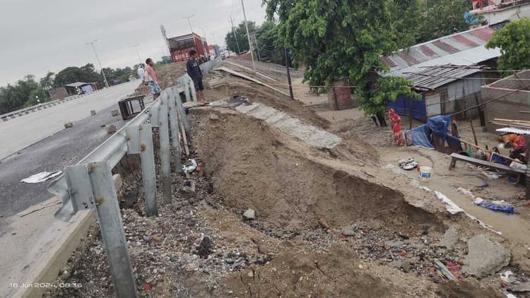पौआखाली.अररिया -गलगलिया एनएच 327 ई पर ठाकुरगंज से पौआखाली के बीच गंभीरगढ स्थित गौरी चौक के समीप सड़क के उत्तरी हिस्से के किनारे डाली गई बालू मिट्टी इन दिनों लगातार बारिश के चलते रेनकट की भेंट चढ़ रही है. जिस कारण एनएच 327 ई से सटे और निचले हिस्से में निवास करने वाले करीब आधा दर्जन परिवार इनसे प्रभावित है. यहां निवास करने वाले दिलीप कुमार सिंह, जानकी देवी, मुकेश शर्मा, प्रदीप राय व अन्य लोगों के घर आंगन में सड़क की मिट्टी बहकर जमा हो गई है. करीब तीन से पांच फीट ऊंचाई तक मिट्टी आंगन में भर आई है. लोगों के चापाकल और मोटर पंप तक जमींदोज हो गया. आंगन ही नहीं बल्कि घरों के अंदर भी मिट्टी जमा हो गया है जिसे प्रभावित परिवार के लोग खुद से बाहर निकालने में लगे हुए हैं. प्रभावित परिवार के लोगों ने बताया कि पिछले कुछ दिनों से हो रही बारिश के चलते सड़क की मिट्टी बहकर हमारे घर आंगन के अंदर भर आई है, जिस कारण हमारे पास रहने खाने तथा स्वच्छ पेयजल की समस्या उत्पन्न हो गई है. गली, आंगन, बरामदा, किचेन सभी जगह मिट्टी से भरा है साथ ही जलजमाव भी. करीब छह -सात माह पूर्व ही नवनिर्मित फोरलेन मार्ग में परिचालन की शुरुआत हो चुकी है. इससे पूर्व में ही हमलोगाें ने सड़क निर्माण में लगे जीआर इंफ्रा प्रालिमिटेड कंपनी से जल निकासी के साथ ही रेनकट की वजह से उनके घरों को कोई क्षति ना पहुंच पाए. इसके लिए पुख्ता इंतजाम किये जाने की मांग लगातार करते रहे हैं. इसके बावजूद रोड निर्माण कंपनी की ओर से उनकी मांगों पर कोई ध्यान नहीं दिया गया. इनलोगों ने इसके लिए ग्राम पंचायत के मुखिया, सरपंच तक से गुहार लगाई मगर उनकी वहां भी नही सुनी गई. ये लोग अपने घरों में कैसे सुरक्षित रह पाएंगे, कैसे इनके घर आंगन में कमर भर तक जमा मिट्टी को खोदकर ये लोग बाहर निकाल पाएंगे, इसकी चिंता खाए जा रही है. वहीं मामले की जानकारी के बाद इस स्थल पर रोड निर्माण कंपनी कर्मियों की एक टीम डैमेज कंट्रोल कार्य में जुटी थी. जहां- जहां भी मिट्टी बह चुका है उन जगहों में गिट्टी, बालू, सीमेंट से मिक्सड मेटिरियल तैयार कर डालने का काम किया जा रहा है. वहीं कार्य स्थल पर मौजूद कंपनी के सुपरवाइजर सुजीत कुमार ने कहा है कि क्षतिग्रस्त हिस्से में मरम्मती कार्य जारी है, रेनकट वाले हिस्से को पीसीसी कर सुरक्षित बनाया जाएगा. वहीं रोड किनारे मिट्टी के बदले बालू डाले जाने के सवाल पर उन्होंने कहा कि इस इलाके में काली मिट्टी का अभाव है इस वजह से जिस मिट्टी का भी उपयोग हुआ है वह भी प्रभावकारी है.