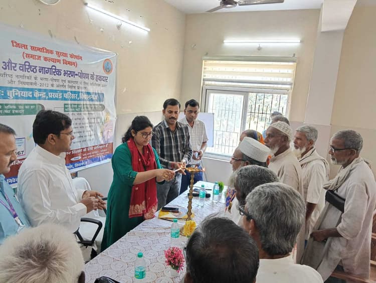 किशनगंज. बुनियाद केंद्र, किशनगंज में “माता-पिता एवं वरिष्ठ नागरिक भरण-पोषण तथा कल्याण नियमावली-2012 ” के तहत एक विशेष कार्यक्रम का आयोजन किया गया. कार्यक्रम का शुभारंभ सहायक निदेशक, जिला बाल संरक्षण इकाई एवं जिला प्रबंधक, बुनियाद केंद्र के द्वारा दीप प्रज्वलित कर किया गया. इस अवसर पर केंद्र के सभी कर्मी उपस्थित थे. कार्यक्रम के दौरान जिला प्रबंधक, बुनियाद केंद्र किशनगंज ने वरिष्ठ नागरिकों के अधिकार, उनके चिकित्सीय उपचार, एवं उनके भरण-पोषण संबंधी विभिन्न पहलुओं पर विस्तृत जानकारी दी. उन्होंने उपस्थित वरिष्ठ नागरिकों को बुनियाद केंद्र द्वारा दी जाने वाली सुविधाओं के बारे में जागरूक किया और उन्हें इन सेवाओं का अधिकतम लाभ उठाने के लिए प्रेरित किया. यह कार्यक्रम वृद्धजनों के कल्याण एवं उनके अधिकारों की रक्षा हेतु जागरूकता फैलाने के उद्देश्य से आयोजित किया गया था. बुनियाद केंद्र, किशनगंज भविष्य में भी वरिष्ठ नागरिकों के हित में ऐसे कार्यक्रम आयोजित करता रहेगा.