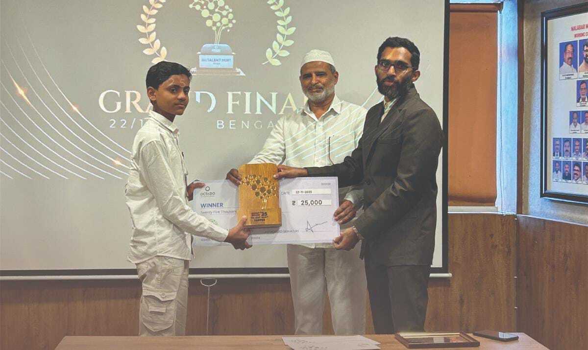 प्रतिष्ठित संस्था ओक्टडो इंटरनेशनल की ओरे से बेंगलुरु में आयोजित ब्राइट ब्रेन नेशनल टैलेंट हंट में कुर्तूबा इंस्टीट्यूट रुहीया काशीबाड़ी के कक्षा आठ के छात्र शगफ सरवर ने उत्कृष्ट प्रदर्शन कर प्रथम स्थान प्राप्त किया है. शगफ सरवर बिशनपुर पंचायत के डहुआबाड़ी निवासी गयास सरवर का पुत्र है. कुर्तूबा इंस्टीट्यूट रुहीया के निदेशक डॉ जूबेर हुदवी ने कहा कि यह राष्ट्रीय स्तर की प्रतिभा प्रतियोगिता कक्षा छह, सात और आठ के विद्यार्थियों के लिए आयोजित की गई थी. जिसमें देश के विभिन्न राज्यों से लगभग पांच सौ छात्र सहभागी बने थे.प्रतियोगिता के पहले और दूसरे चरण ऑनलाइन संपन्न हुआ.जिसमें सफल प्रतिभागियों में से केवल आठ छात्र अंतिम चरण के लिए चयनित किए गए. अंतिम चरण में शगफ सरवर ने अपनी ज्ञान और क्षमता का प्रभावशाली प्रदर्शन करते हुए प्रथम स्थान प्राप्त किया.विजेता को मोमेंटो, प्रशस्ति पत्र और नगदी 25 हजार रुपये देकर सम्मानित किया गया. इस उपलब्धि पर कुर्तूबा इंस्टीट्यूट रुहीया के प्रबंधन एवं शिक्षकों ने शगफ सरवर को मुबारक बाद पेश करते हुए कहा कि यह संस्थान के लिए अत्यंत गौरवपूर्ण क्षण है. यह सफलता अन्य विद्यार्थियों को भी राष्ट्रीय स्तर की प्रतियोगिताओं में भाग लेने हेतु प्रेरित करेगा.डिस्क्लेमर: यह प्रभात खबर समाचार पत्र की ऑटोमेटेड न्यूज फीड है. इसे प्रभात खबर डॉट कॉम की टीम ने संपादित नहीं किया है