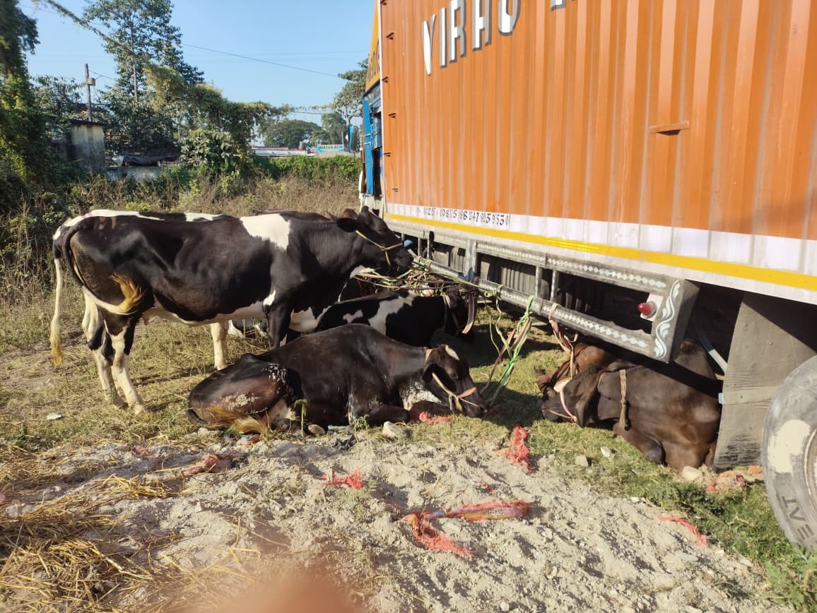 किशनगंज. सदर थाना क्षेत्र के ब्लॉक चौक के समीप रविवार को पुलिस ने मवेशी लदे दो पिकअप वाहन को जब्त किया है. दोनों पिकअप पर 16 गाय लदा था. एसडीपीओ वन गौतम कुमार के नेतृत्व में उक्त कार्रवाई की गयी. टीम में सदर थाना के प्रशिक्षु अवर निरीक्षक प्रदीप कुमार शामिल थे. पुलिस ने दो व्यक्तियों को भी हिरासत में लिया है. हिरासत में लिया गया व्यक्ति शफीक अंसारी व नादिर साह अररिया जिले का रहने वाला है. पुलिस हिरासत में लिये गये आरोपितों से पूछताछ कर रही है. पुलिस को किशनगंज के रास्ते अवैध रूप से मवेशी ले जाये जाने की सूचना मिली थी. सूचना के बाद ब्लॉक चौक व बहादुरगंज मोड़ के पास चेकिंग अभियान चलाया गया. चेकिंग के दौरान दो पिकअप वाहन वहां से गुजर रही थी. चालक को रुकने का इशारा किया गया. पुलिस को देखते ही दोनों वाहनों का चालक फरार होने लगा. दोनों चालकों को खदेड़ कर पकड़ लिया गया. वाहन की तलाशी ली गयी. दोनों वाहनों में मवेशी लदा था. मवेशी से संबंधित कागजात की मांग करने पर कागजात प्रस्तुत नही किया गया. इसके बाद वाहन को जब्त कर थाना लाया गया. मवेशी को सिमरी बख्तियारपुर में लोड किया गया था. मवेशियों को सिमरी बख्तियारपुर से पांजीपारा ले जाया जा रहा था. पकड़े गये पिकअप वाहन चालकों से पुलिस पूछताछ कर रही है. यह पता लगाया जा रहा है कि मवेशियों को किसके पास पहुंचाना था.