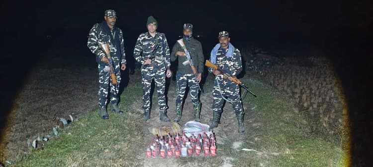 दिघलबैंक. एसएसबी की ‘एफ’ कंपनी दिघलबैंक सीमा चौकी की बीओपी डुबाटोला की नाका पार्टी ने भारत-नेपाल सीमा पर 55 बोतल शराब जब्त की है. यह शराब नेपाल से भारत में तस्करी कर लाई जा रही थी. घटना रविवार को शाम करीब 8:05 बजे की है. सीमा स्तंभ संख्या 135 के समीप हरिभिट्टा क्षेत्र में मात्र 25 मीटर भारत की ओर गश्त कर रही नाका पार्टी को संदिग्ध गतिविधि दिखी. तलाशी लेने पर 55 बोतल (प्रत्येक 300 मिलीलीटर) विदेशी शराब बरामद हुई, जिसका कुल मात्रा 16.5 लीटर है. कार्रवाई का नेतृत्व उपनिरीक्षक रवि चौधरी कर रहे थे. उनके साथ टीम में आरक्षी शिव सागर, आरक्षी बोया नरसीनुनु, आरक्षी मोकिदुल इस्लाम, आरक्षी पी विनोद कुमार शामिल रहे. तस्कर मौके का फायदा उठाकर अंधेरे का लाभ लेते हुए नेपाल की ओर फरार हो गए. जब्त शराब को विधिवत सीज कर आगे की कानूनी कार्रवाई के लिए दिघलबैंक थाने में जमा कर दी गयी है. एसएसबी अधिकारियों ने बताया कि भारत-नेपाल सीमा पर शराब, नशीले पदार्थ और अन्य अवैध सामानों की तस्करी रोकने के लिए लगातार विशेष अभियान चलाए जा रहे हैं. यह लगातार दूसरी बड़ी सफलता है.