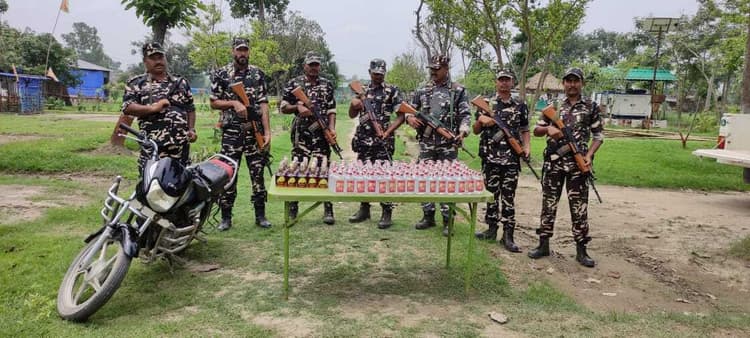 दिघलबैंक.भारत- नेपाल सीमा की सुरक्षा में तैनात एसएसबी 12वीं वाहिनी की जी कंपनी मुख्यालय दिघलबैंक एवं बीओपी डुब्बाटोला में दो अलग-अलग कार्रवाइयों में भारी मात्रा में नेपाल निर्मित शराब सहित एक बाइक को जप्त किया गया. जी कंपनी प्रभारी इंस्पेक्टर एल अहंजोओ सिंह ने बताया कि बालुवाडी बॉर्डर पिलर संख्या 133/15 रात्रि करीब 9 बजे शराब तस्कर द्वारा नेपाल से भारी मात्रा में शराब लेकर भारतीय क्षेत्र में प्रवेश कर रहा था. सामने एसएसबी जवानों को देखकर शराब की बोरी को फेंक कर नेपाल की ओर भागने में कामयाब रहे. इस कार्रवाई में नेपाल निर्मित फाइटर नामक 25 बोतल शराब व लीची नामक 90 बोतल शराब को जप्त किया गया. इस कार्रवाई का नेतृत्व एएसआई मनोरंजन दत्ता ने किया. वही बीओपी डुब्बाटोला के बॉर्डर पिलर संख्या 136 से दो किलोमीटर अंदर बदल चौक के समीप गुप्त सूचना के आधार पर एक बाइक को रुकने के लिए कहा सामने एसएसबी जवानों को देखकर बाइक चालक बाइक छोड़कर भाग निकले जांचों उपरांत उसे बाइक में रखे बोरे से नेपाल निर्मित फाइटर नामक 30 बोतल शराब और लीची 179 बोतल शराब के साथ हीरो एचएफ डीलक्स मोटरसाइकिल को जप्त किया गया.इस जप्ती का नेतृत्व एएसआई जमिनी कांत राय ने किया.
