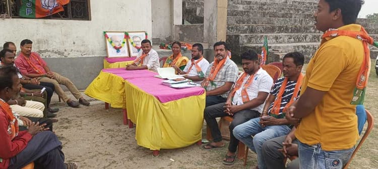 पहाड़कट्टा. पोठिया प्रखंड मुख्यालय स्थित पल्स टू आजाद उच्य विद्यालय पोठिया के छात्रावास प्रांगण में शुक्रवार को भारतीय जनता पार्टी के मंडल इकाई की बैठक आयोजित की गयी. इसकी अध्यक्षता पहाड़कट्टा मंडल अध्यक्ष राहुल यादव ने की. पोठिया, छत्तरगाछ, पहाड़कट्टा मंडल इकाई की इस में बतौर मुख्य अतिथि के रूप में भाजपा जिला उपाध्यक्ष सपना देवी शामिल हुई. जिसमें स्थापना दिवस, बूथ कमेटी के गठन करने पर चर्चा, मंडल टोली के लिए सदस्यों के नामों पर विचार, विधानसभा सम्मेलन, अन्यायन प्रदेश नेतृत्व द्वारा दिए गए निर्देशों का अनुपालन करने सहित पार्टी संगठन पर विचार से चर्चा हुई. बैठक में भाजपा के वरिष्ठ नेता सह बीस सूत्री सदस्य संजय उपाध्याय,छत्तरगाछ मंडल अध्यक्ष सोभा रानी,पोठिया मंडल अध्यक्ष मनोज अग्रवाल,मंडल कोषाध्यक्ष संजय कुमार दास,मंडल महामंत्री आंनद कुमार सिंह,विष्णु सिंह,सुपौल मुर्मू सहित दर्जनों पार्टी कार्यकर्ता मौजूद थे.