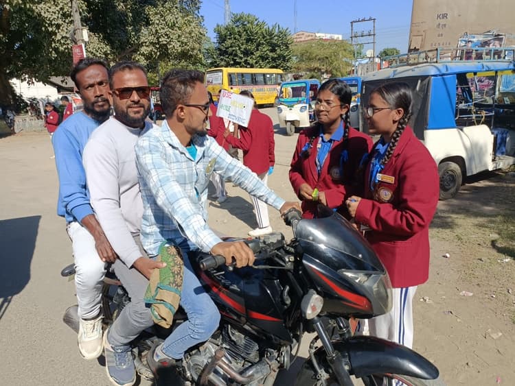 स्कूल की छात्र- छात्राओं ने लोगों को सड़क सुरक्षा के प्रति जागरूक किया और कहा कि वह वाहन चलाते समय अपनी गति सीमा का ध्यान रखें. ओवरस्पीडिंग या रैश ड्राइविंग नहीं करें. छात्राओं ने लेन- अनुशासन के प्रति लोगों को जागरूक किया और ट्रैफिक सिग्नल का पालन करने की अपील की. साथ ही वाहन चलाते समय मोबाइल का इस्तेमाल नहीं करने की बात कही.