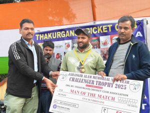 ठाकुरगंज.जहांगीर आलम मेमोरियल न्यू ईयर चैलेंजर ट्रॉफी का दूसरा सेमीफाइनल गुरुवार को खेला गया. मैच टीसीसी सीनियर ठाकुरगंज व सालिम एकादश खरना ठाकुरगंज के बीच हुआ. टीसीसी नें टॉस जीतकर पहली पारी मे बीस ओवर मे सात विकेट खोकर 229 रन बनाये. इनके बल्लेबाज कुमार गौरव 59 रन बिट्टू साह 40 रन अमित मंडल 35 रन बनाये. सालीम एकादश के गेंदबाज टिंकू नें चार विकेट व फैजान और जिसान नें एक एक विकेट लिए. दूसरी पारी मे सालीम एकादश अपने लक्ष्य का पीछा करते हुए 14 ओवर मे 93 रन बनाकर ऑल आउट हो गई. इनके बल्लेबाज फैजान 45 रन अबरार ने 13 रन बनाए. टीसीसी के गेंदबाज मोनू खान 4 विकेट और बंटी नें तीन विकेट लिए. टीसीसी 136 रन से सेमीफाइनल जीतकर फाइनल मे पहुंची. मैन ऑफ़ द मैच मोनू खान बने जिन्होंने शानदार चार विकेट लिए. मैच में अंपायर शांतनु मंडल, नसीम अख्तर, थर्ड अंपायर प्रेम चौधरी, रेफरी रोहित जायसवाल, कमेंटेटर सुनील सहनी, सूरज गुप्ता, अनुभव गोस्वामी, स्कोरर विशाल चौधरी, आजम अली मौजूद थे. मैच में अध्यक्ष कन्हैया लाल महतो, उपाध्यक्ष रोहित जायसवाल, सचिव संजय सिन्हा, संयोजक अमित सिन्हा, अरविंद झा, शांतु मंडल, अनिल साह, अमरजीत चौधरी, प्रेम चौधरी, दुर्गा साह, इंद्रजीत चौधरी, बिट्टू साह, मो वसी, आकाश चौधरी, सूरज चौधरी, गोविन्द यादव, अमन चौधरी, विक्रम पासवान, ऋतिक बिकास दे, बिक्की कामती आदि मौजूद थे.