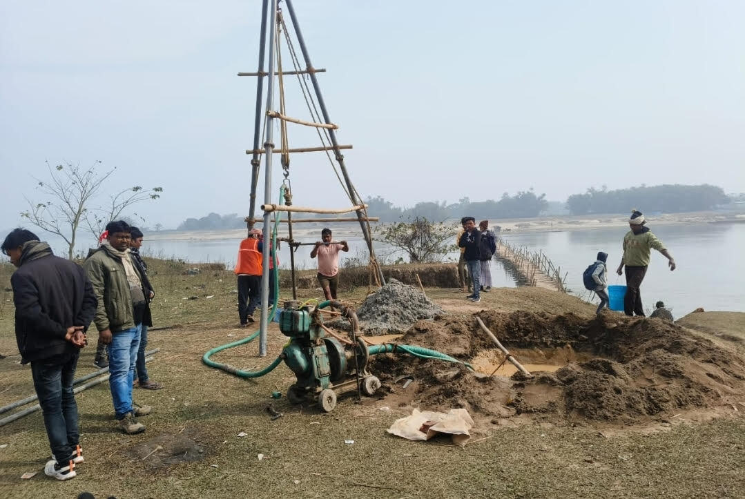 पहाड़कट्टा. पोठिया प्रखंड क्षेत्र के लोगों के लिए शनिवार का दिन ऐतिहासिक रहा. डोंक नदी के मोहगर-खरखड़ी घाट पर बहुप्रतीक्षित उच्चस्तरीय आरसीसी पुल निर्माण का रास्ता अब पूरी तरह साफ हो गया है. शनिवार को बोलबम कंस्ट्रक्शन द्वारा पुल के लिए ”स्वाइल टेस्टिंग” (मिट्टी जांच) का कार्य शुरू कर दिया गया. इस खबर से स्थानीय ग्रामीणों में भारी उत्साह और खुशी का माहौल है.2026-27 तक पूरा होगा निर्माण कार्य
