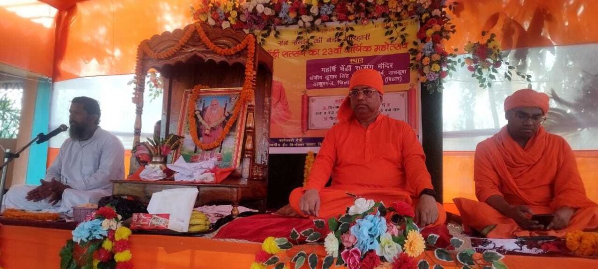ठाकुरगंज. सनातन परंपरा में गुरु को श्रेष्ठ माना गया है. शास्त्रों में कहा गया है कि ईश्वर सर्वशक्तिमान है. ईश्वर को प्राप्त करने का एकमात्र तरीका सत्संग है. ये विचार महर्षि मेंही आश्रम कुप्पा घाट भागलपुर से युवा सन्यासी पूज्य पाद स्वामी सत्यप्रकाश जी महाराज ने कही. ठाकुरगंज प्रखंड के नावडूबा गांव में अवस्थित महर्षि मेही सत्संग मंदिर में आयोजित 23 वां वार्षिक महोत्सव में भागलपुर से आए युवा सन्यासी स्वामी सत्य प्रकाश जी महाराज ने इस दौरान कहा कि सत्संग से ही ईश्वर की प्राप्ति की जा सकती है. जैसा संग होगा, वैसा उसका प्रभाव होगा. इसलिए मनुष्य को श्रद्धापूर्वक गुरु की सेवा करना ही परम धर्म है. उन्होंने कहा कि कहा कि सर्व शक्तिमान एवं सर्व समर्थ ईश्वर ही इस संसार सागर के मूल आधार हैं और ब्रह्माण्ड का कोई भी कार्य इनकी कृपा के बिना नहीं होता है. ईश्वर की स्वीकृति और सहायता के बिना कोई भी योजना न बन सकती है और न ही पूरी हो सकती है. परम पिता परमेश्वर की कृपा एवं गुरु का आशीर्वाद पात्र धर्मार्थी पुरुष की शक्ति तथा उसके प्रयासों को अत्यंत प्रभावशाली बना देता हैं. ईश्वर द्वारा सृजित मानव प्राणी परमात्मा को कोई भी चीज वस्तु देने सक्षम नहीं है. उन्होंने कहा कि जीवन में अचानक लाभ प्राप्त होना या फिर आया हुआ संकट टल जाना, घटनाओं का पूर्वाभास होना, इस प्रकार के बहुत सारे संकेत इस बात की पुष्टि करते हैं कि भक्तों पर दैवीय शक्ति सहायक है. कार्यक्रम के बाद भंडारा का आयोजन किया गया. कार्यक्रम की आयोजनकर्ता बागेश्वरी देवी थी. कार्यक्रम के दौरान विनय बाबा, निरंजन गुप्ता, मेघ लाल यादव, शंभु यादव, शकल देव पासवान, द्रोपदी देवी, कुंती देवी, राम नरेश भगत आदि लोगों के साथ दर्जनों सत्संगी उपस्थित थे.