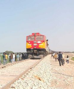टेढ़ागाछ में ट्रायल ट्रेन पहुंचने पर उमड़ी लोगों की भीड़