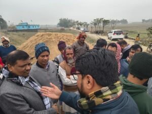 ठाकुरगंज. कटहल डांगी (पटेश्वरी) केटीटीजी रोड से कॉलेज मोड़ होते हुए धर्मकांटा राष्ट्रीय राजमार्ग 327 ई तक लगभग साढ़े चार किलोमीटर लंबी ठाकुरगंज बाईपास सड़क का निर्माण कार्य बाधित होने के बाद कार्यपालक अभियंता शैलेश कुमार मंगलवार को कार्यस्थल पर पहुंचे. जहां भू-स्वामियों से बातचीत कर उन्हें समझाने का प्रयास किया और संबंधित संवेदक को निर्माण कार्य जारी रखने देने का आग्रह किया. अभियंता ने भू-स्वामिययों को आश्वस्त किया कि उनकी समस्याओं को जिला प्रशासन के समक्ष रखा जाएगा. लेकिन मौके पर मौजूद भू-स्वामियों ने स्पष्ट और दो टूक शब्दों में कहा कि जब तक जिला प्रशासन के द्वारा अधिग्रहित भूमि के मुआवजा का भुगतान उन्हें नहीं कर दिया जाता, तब तक किसी भी स्थिति में सड़क निर्माण कार्य नहीं होने दिया जाएगा. भू-स्वामियों का कहना है कि उनकी जमीन पर कार्य तो शुरू कर दिया गया, लेकिन अब तक मुआवजा नहीं मिलना प्रशासनिक उदासीनता को दर्शाता है. भू-स्वामियों ने यह भी आरोप लगाया कि छः माह पूर्व ही भूमि अधिग्रहण से संबंधित अधिसूचना जिला प्रशासन किशनगंज के द्वारा दिया गया था पर अब तक भूमि अधिग्रहण की मुआवजा राशि के संबंध दूसरी नोटिस भी प्राप्त नहीं हुई, जिससे वे मजबूर होकर निर्माण कार्य रोकने को विवश हुए हैं. इधर, सड़क निर्माण कार्य रुकने से इस महत्वाकांक्षी ठाकुरगंज बाईपास परियोजना पर अनिश्चितता के बादल मंडराने लगे हैं. अब सबकी निगाहें जिला प्रशासन पर टिकी हैं कि वह कब तक भू-स्वामियों की मांगों पर संज्ञान लेते हुए मुआवजा भुगतान की प्रक्रिया पूरी करता है, ताकि ठाकुरगंज बायपास सड़क निर्माण कार्य पुनः शुरू हो सके.
