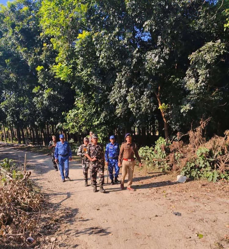 गलगलिया बुधवार कोसंयुक्त पेट्रोलिंग की गई. कुर्लीकोट थानाध्यक्ष अभिषेक कुमार के नेतृत्व में 19 वीं वाहिनी कुर्लीकोट व नेपाल एपीएफ कंपनी के अधिकारियों व नेपाल के आर्म्स पुलिस फोर्स के अधिकारी के द्वारा इंडो-नेपाल सीमा पर तस्करी और घुसपैठ को रोकने के उद्देश्य से सुबह संयुक्त पेट्रोलिंग की गई. एसएसबी की ओर से मिली जानकारी के अनुसार भारत नेपाल सीमा पर दोनो ओर से सीमा पर गश्त बढ़ा दी है. सीमा पर तैनात एसएसबी के जवान काफी चौकस नजर आ रहे हैं. उसी कड़ी में सीमा पर हर एक गतिविधियों पर पैनी नजर रखने के उद्देश्य से बुधवार की सुबह नेपाल आर्म्ड फोर्स के जवानों के साथ भारत नेपाल सीमा स्थित कुर्लीकोट थाना क्षेत्र में एसएसबी की 19 वीं बटालियन कुर्लीकोट कंपनी के जवानों व कुर्लीकोट थाना के पुलिस के द्वारा संयुक्त पेट्रोलिंग की दोनों सीमाओं के बीच की सयुंक्त पैदल पेट्रोलिंग की जो शाम तक चली संयुक्त गश्ती पेट्रोलिंग टीम ने नोमेंसलैंड पर मौजूद पिलरों का निरीक्षण भी किया. कुर्लीकोट थानाध्यक्ष अभिषेक कुमार ने बताया कि पेट्रोलिंग का मुख्य उद्देश्य दोनों देशों के जवानों के बीच आपसी भाईचारा के साथ दोनों देशों के बीच हो रहे अवैध गतिविधियां, तस्करी घुसपैठिए को रोका जा सके. सीमा की कड़ी निगरानी हो रही है जिससे की कोई आपराधिक तत्व हमारी सीमा पर घुसपैठ न कर सके इस पेट्रोलिंग के दौरान सयुंक्त टीम ने नेपाल आर्म्स कुर्लीकोट थानाध्यक्ष अभिषेक कुमार और 19वीं बटालियन कुर्लीकोट के इंचार्ज और जवान शामिल थे.