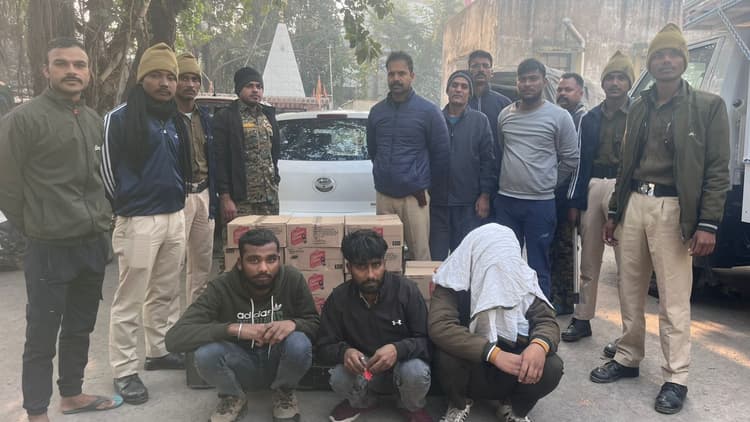 किशनगंज जिले में उत्पाद विभाग के द्वारा मद्यनिषेध अधिनियम के तहत लगातार शराब तस्करों और शराब का सेवन करने वालों के विरुद्ध कार्रवाई जारी है. इसी क्रम में उत्पाद विभाग के निरीक्षक मोहम्मद हैदर अली अपने टीम के साथ गुप्त सूचना के आधार पर जिले के मोजाबाड़ी पुल पर जांच अभियान चलाया. इस दौरान एक सफेद रंग की कार को रोक कर तलाशी ली गई. तलाशी के दौरान कार में लदे 251.28 लीटर विदेशी शराब बरामद करते हुए तीन तस्कर अश्वनी कुमार, कृष्णा राज, सोनू कुमार मधेपुरा जिला निवासी को गिरफ्तार किया गया. इस दौरान एक तस्कर मौका पाकर फरार हो गया. तीनों तस्करों को मद्यनिषेध अधिनियम के तहत सदर अस्पताल में स्वास्थ्य जांच कराकर न्यायिक हिरासत में जेल भेज दिया गया. उत्पाद निरीक्षक मोहम्मद हैदर अली ने बताया कि यह लोग एक सफेद रंग के कार में बंगाल से शराब लोड कर मधेपुरा जा रहा था. शराब के साथ तीन तस्कर को गिरफ्तार किया गया है, एक तस्कर फरार हो गया है. आगे की कार्रवाई को लेकर हम लोगों के द्वारा शराब के मुख्य तस्कर की गिरफ्तारी के लिए प्रक्रिया जारी है. जल्द ही शराब के मुख्य तस्कर को गिरफ्तारी कर लिया जाएगा.