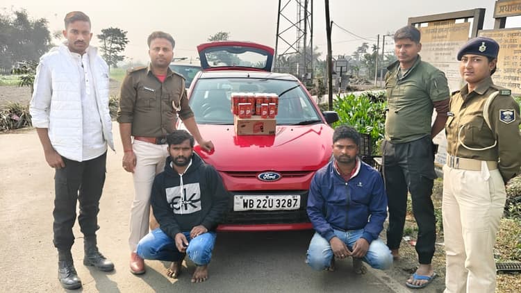 किशनगंज. उत्पाद विभाग की टीम ने सोमवार को गलगलिया चेकपोस्ट पर तीन तस्करों को भारी मात्रा में शराब के साथ गिरफ्तार किया है. उत्पाद निरीक्षक मनीष सक्सेना ने बताया कि बिहार-बंगाल सीमा पर स्थित गलगलिया चेकपोस्ट पर सहायक अवर निरीक्षक अभिमन्यु कुमार सिंह ने टीम के साथ वाहनों की जांच कर रहे थे. इसी दौरान कार व मैजिक को संदेह के आधार पर रोका गया. तलाशी के दौरान दोनों वाहनों से 200.01 लीटर विदेशी शराब बरामद हुआ. कार से 78.450 लीटर विदेशी शराब बरामद हुआ. मौके से तस्कर हीरु थात्मा और साफकत आलम अररिया निवासी को गिरफ्तार किया. वहीं मैजिक से 121.560 लीटर विदेशी शराब बरामद हुआ. चालक कालू मंडल चकमारी, पश्चिम बंगाल निवासी को गिरफ्तार किया गया. उत्पाद विभाग की टीम ने तीनों गिरफ्तार तस्करों न्यायिक हिरासत में जेल भेज दिया.